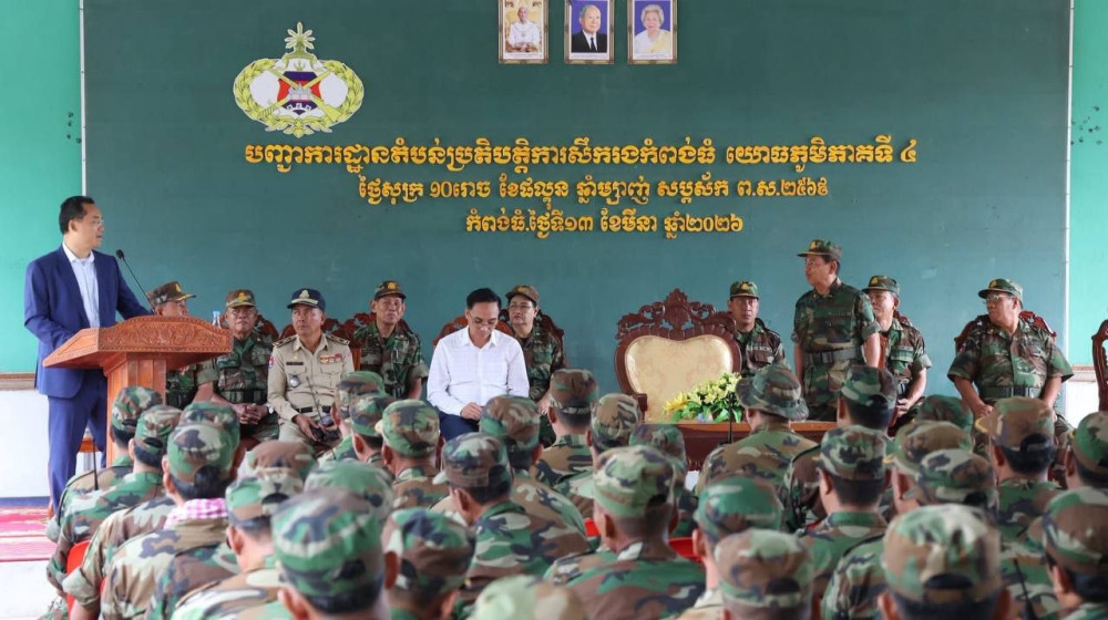 ឧត្តមសេនីយ៍ទោ សោម ស៊ុន មេបញ្ជាការតំបន់ប្រតិបត្តិការសឹករងកំពង់ធំ បានឡើងធ្វើរបាយការណ៍ស្វាគមន៍ ប្រកបដោយភាពកក់ក្ដៅជាទីបំផុត និងបានគូសបញ្ជាក់ អំពីតួនាទីភារកិច្ច របស់កងកម្លាំង ក្នុងភារកិច្ចការពារបូរណភាពទឹកដី ការពារជាតិ សាសនា និងព្រះមហាក្សត្រ។ ជាក់ស្ដែងក្នុងពេលមានសង្គ្រាមឈ្លានពាន ពីសំណាក់ទាហានថៃ ក្នុងឆ្នាំ ២០០៨ ដល់ ២០១១ កន្លងទៅ និងការរំលោភឈ្លានពានមកលេីដែនអធិបតេយ្យភាពរបស់កម្ពុជា ជាទ្រង់ទ្រាយធំនៅក្នុងឆ្នាំ ២០២៥ កន្លងទៅនេះ។ កងកម្លាំងនៃបញ្ជាការដ្ឋានតំបន់ប្រតិបត្តិការសឹករងកំពង់ធំ មួយផ្នែកក៏បានបញ្ជូនទៅចូលរួមចំណែកក្នុងការការពារបូរណភាពទឹកដីនៅតាមខ្សែបន្ទាត់ព្រំដែនផងដែរ។ ក្រៅពីនោះទៀតដោយអនុវត្តតាមបទបញ្ជារបស់សម្ដេចមហាបវរធិបតី ហ៊ុន ម៉ាណែត នាយករដ្ឋមន្ត្រីនៃព្រះរាជាណាចក្រកម្ពុជាតំបន់ប្រតិបត្តិការសឹករងកំពង់ធំ ក៏បានធ្វើសកម្មភាពយ៉ាងសកម្មក្នុងការការពារទប់ស្កាត់និងបង្ក្រាបបទល្មើសធនធានធម្មជាតិ មានដូចជាការបង្ក្រាបបទល្មើសព្រៃឈើ និងការបង្ក្រាបបទល្មើសនេសាទខុសច្បាប់នៅក្នុងភូមិសាស្ត្រខេត្តកំពង់ធំ ទទួលបានលទ្ធផលល្អប្រសើរគួរជាទីមោទនៈ។