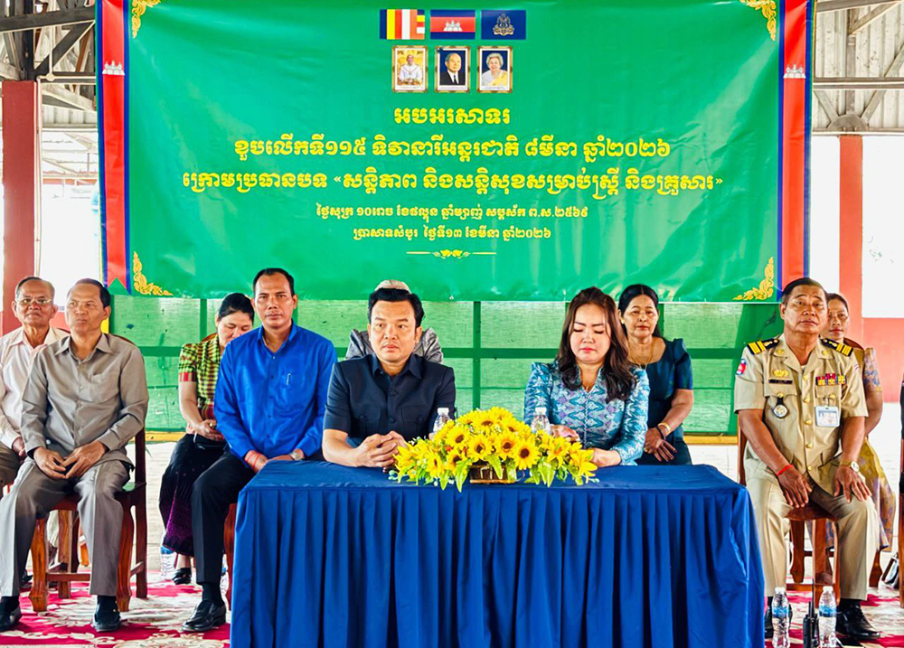 AKP កំពង់ធំ ថ្ងៃទី១៣ ខែមីនា ឆ្នាំ២០២៦--លោក ឃឹម សុខឃាង អភិបាលស្រុកប្រាសាទសំបូរបានជំរុញលើកកម្ពស់ សន្តិសុខគ្រួសារ និងការផ្ដល់តម្លៃដល់ស្ត្រីក្នុងពិធីអបអរសាទរខួបលើកទី១១៥ ទិវានារីអន្តរជាតិ៨ មីនា ក្រោមប្រធានបទ "សន្តិភាព និងសន្តិសុខសម្រាប់ស្ត្រី និងគ្រួសារ" នៅសាលាស្រុកប្រាសាទសំបូរ ខេត្តកំពង់ធំ នាព្រឹកថ្ងៃទី១៣ ខែមីនា ឆ្នាំ២០២៦។