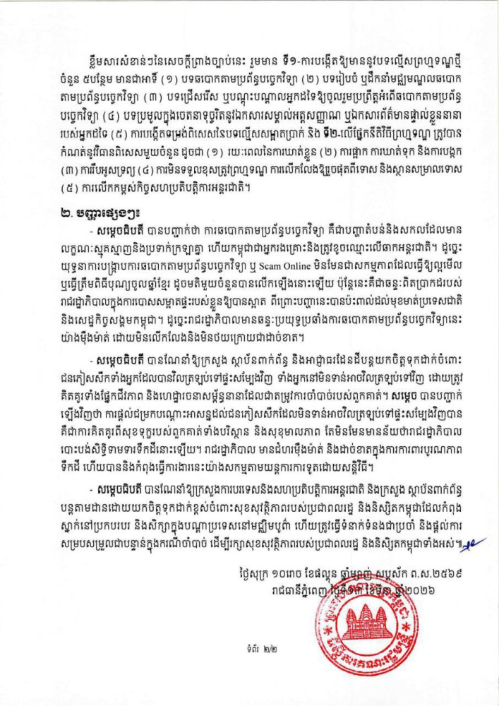សេចក្តីប្រកាសព័ត៌មាន ស្តីពីលទ្ធផលនៃកិច្ចប្រជុំពេញអង្គគណៈរដ្ឋមន្រ្តី