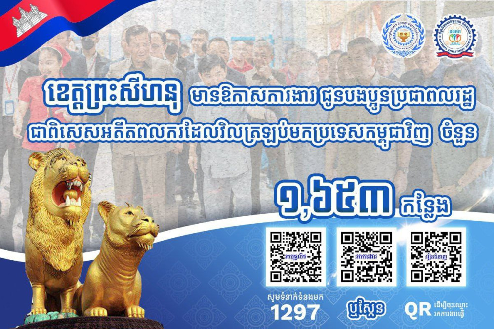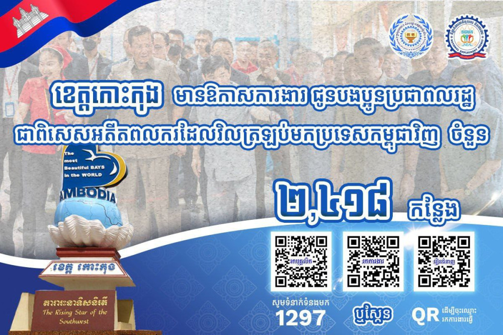 ក្រសួងការងារ៖ ខេត្តជាប់សមុទ្រចំនួន៤ មានឱកាសការងារជាង ៤ពាន់កន្លែង កំពុងរង់ចាំអតីតពលករត្រឡប់មកពីថៃ និងអ្នកកំពុងស្វែងរកការងារធ្វើ