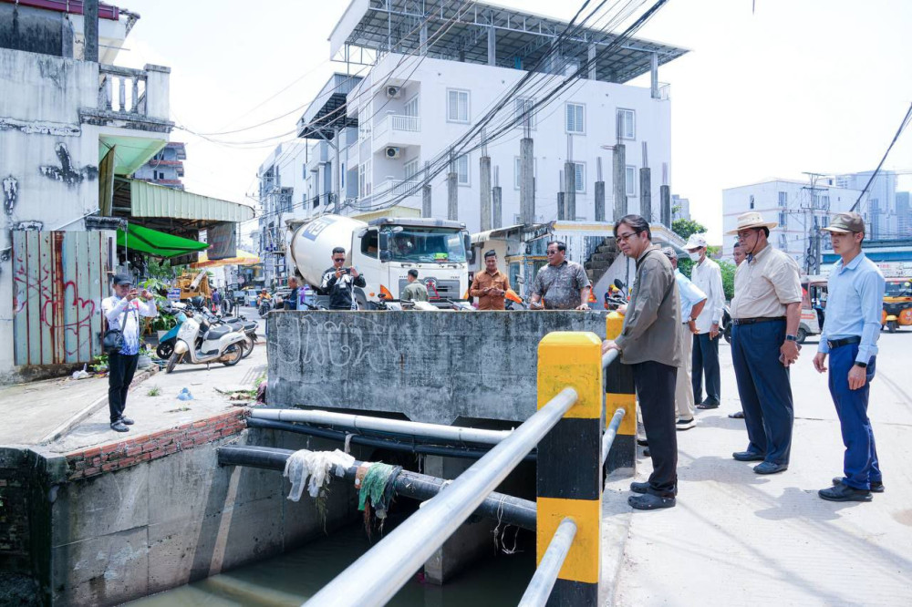 ឯកឧត្តម ម៉ាង ស៊ីណេត ចុះពិនិត្យការដ្ឋានពង្រីកស្ពានបេតុងទួលខ្សាច់ ក្រុងព្រះសីហនុ