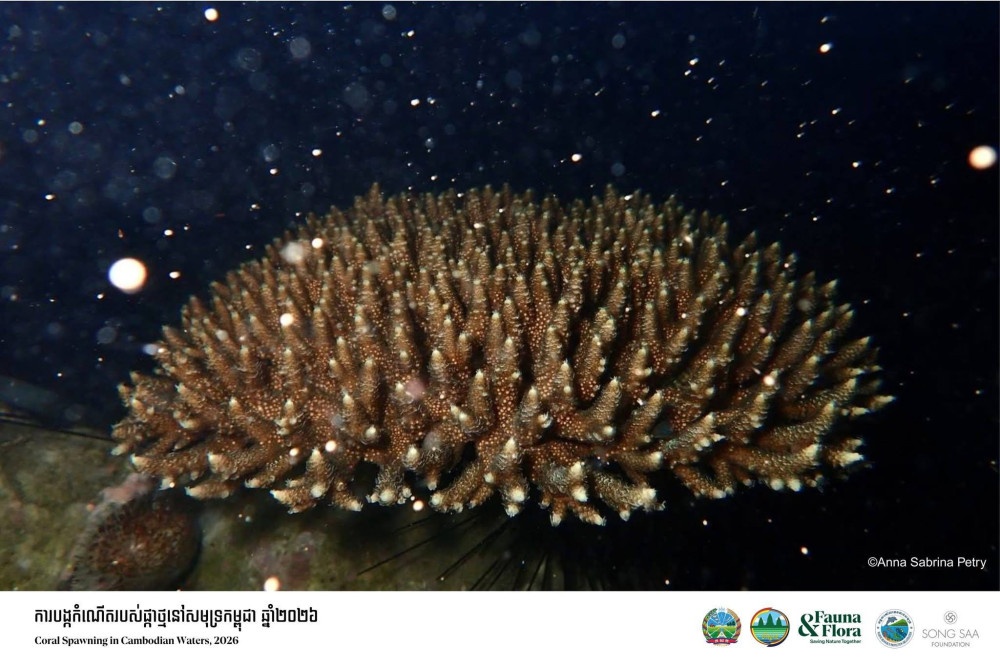 AKP ភ្នំពេញ ថ្ងៃទី១៦ ខែមីនា ឆ្នាំ ២០២៦–ក្រសួងកសិកម្ម រុក្ខាប្រមាញ់ និងនេសាទ ក្រសួងបរិស្ថាន សហការជាមួយអង្គការសត្វព្រៃ និងរុក្ខជាតិ អង្គការ គាំពារធនធានសមុទ្រ បានប្រកាសពីការរកឃើញនូវការបង្កកំណើតផ្កាថ្មប៉ប្រះទឹកជាលើកទី៣ នៅប្រជុំកោះរ៉ុង និងជាលើកដំបូងនៅកោះសង្សារនៃខេត្តព្រះសីហនុ និងប្រជុំ កោះស្តេចនៃខេត្តកោះកុង។
