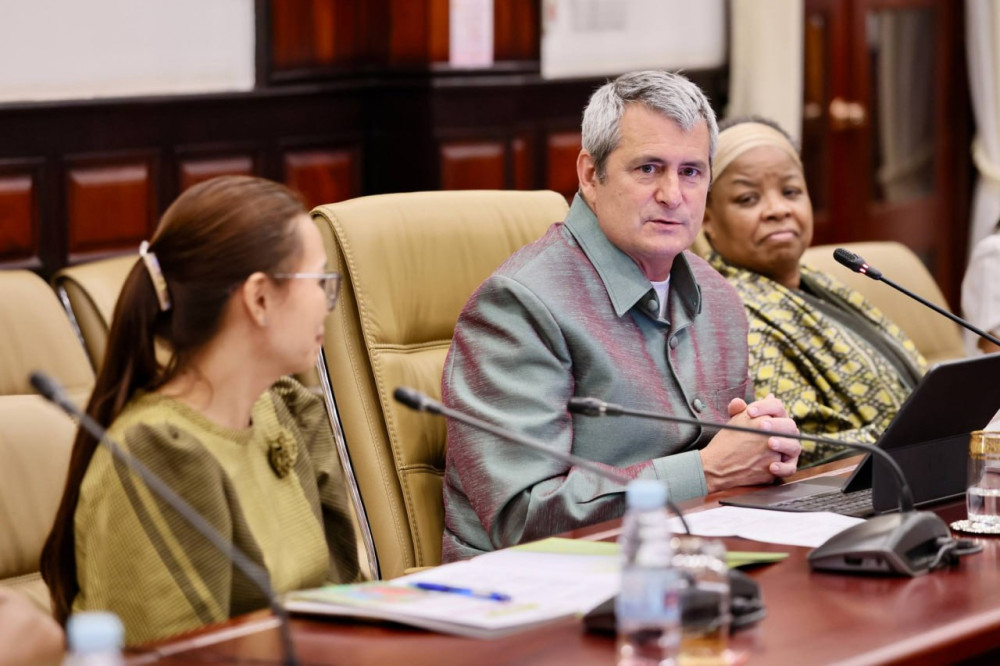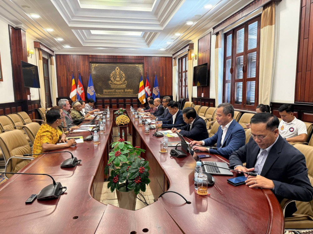 AKP ភ្នំពេញ ថ្ងៃទី១៧ ខែមីនា ឆ្នាំ២០២៦--ការងារលើកកម្ពស់ការអប់រំសម្រាប់កុមារនៅក្នុងតំបន់គោលដៅនៃប្រទេសកម្ពុជា ត្រូវបាន លើកយកមកពិភាក្សារវាងឯកឧត្តមបណ្ឌិតសភាចារ្យ ហង់ជួន ណារ៉ុន ឧបនាយករដ្ឋមន្ត្រី រដ្ឋមន្ត្រីក្រសួងអប់រំ យុវជន និងកីឡាជាមួយលោក Mark Viso អគ្គនាយកនៃអង្គការ អេហ្វ អេក កម្ពុជា ប្រចាំសហរដ្ឋអាមេរិក និងលោកស្រី ពិន ទិត្យវាសនា នាយិកាប្រចាំប្រទេសនៃអង្គការ អេហ្វ អេក កម្ពុជា នៅទីស្តីការក្រសួងកាលពីរសៀលថ្ងៃទី១៦ ខែមីនា ឆ្នាំ២០២៦។