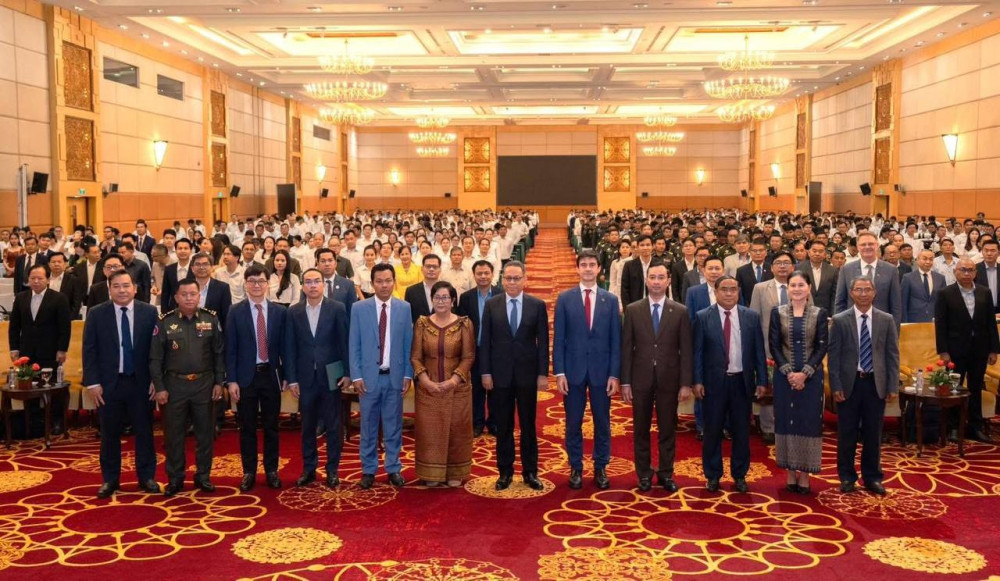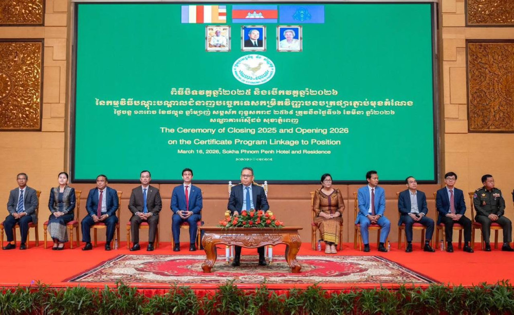AKP ភ្នំពេញ ថ្ងៃទី១៧ ខែមីនា ឆ្នាំ២០២៦--ក្រសួងសេដ្ឋកិច្ច និងហិរញ្ញវត្ថុ បានរៀបចំពិធីបិទវគ្គសិក្សាឆ្នាំ២០២៥ និងបើកវគ្គសិក្សាឆ្នាំ ២០២៦ នៃ «កម្មវិធីបណ្ដុះបណ្ដាលកម្រិតវិញ្ញាបនបត្រផ្សារភ្ជាប់មុខតំណែង» ដោយមានការចូលរួមពីសិក្ខាកាមជ័យលាភីឆ្នាំ២០២៥ និងសិក្ខាកាមគោលដៅឆ្នាំ២០២៦ ជាមន្រ្តីអនុវត្តការងារហិរញ្ញវត្ថុសាធារណៈមកពីក្រសួងស្ថាប័ន រួមទាំងមន្ទីរជំនាញ គ្រឹះស្ថានសាធារណៈរដ្ឋបាល និងរដ្ឋបាលរាជធានី-ខេត្តទាំង២៥ កាលពីថ្ងៃទី១៦ ខែមីនា ឆ្នាំ២០២៦ នៅសណ្ឋាគាររ៉េស៊ីដង់សុខាភ្នំពេញ។