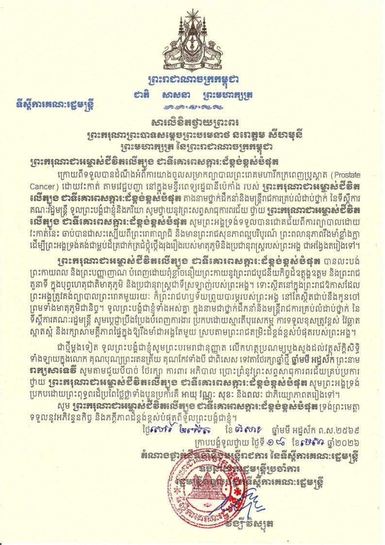 សម្តេច ប្រធានរដ្ឋសភា ទូលថ្វាយសារលិខិតថ្វាយព្រះពរ ថ្វាយព្រះករ...