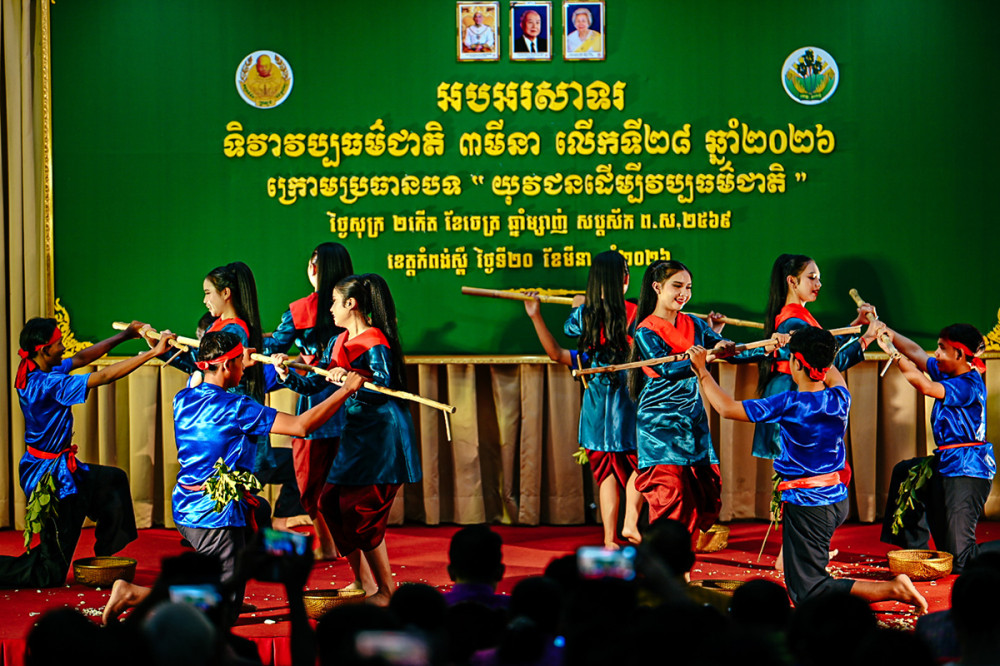 AKP ភ្នំពេញ ថ្ងៃ២០ ខែមីនា ឆ្នាំ២០២៦ -- មន្ទីរវប្បធម៌ និងវិចិត្រសិល្បៈខេត្តកំពង់ស្ពឺ បានរៀបចំ ពិធីអបអរសាទរទិវាវប្បធម៌ជាតិ ៣ មីនា លើកទី២៨ ឆ្នាំ២០២៦ ក្រោមប្រធានបទ «យុវជនដើម្បីវប្បធម៌ជាតិ» ក្រោមអធិបតីភាព ឯកឧត្តម ស៊ុន ជា សមាជិកក្រុមប្រឹក្សាខេត្ត ឯកឧត្តម ហន ភក្តី អភិបាលរងខេត្តកំពង់ស្ពឺ ព្រមទាំងមានការអញ្ចើញចូលរួមពី លោក លោកស្រី ប្រធាន អនុប្រធានមន្ទីរអង្គភាពជុំវិញខេត្ត លោកគ្រូ អ្នកគ្រូ និងសិស្សានុសិស្សយ៉ាងច្រើនកុះករ។