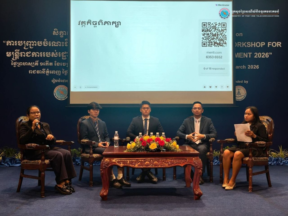 ឯកឧត្តម លីវ សុផាណារិទ្ធិ រដ្ឋលេខាធិការក្រសួងប្រៃសណីយ៍ និងទូរគមនាគមន៍ (ក.ប.ទ.) នៅរសៀលថ្ងៃទី២០ ខែមីនា ឆ្នាំ២០២៦ បានអញ្ជើញជាអធិបតីបិទសិក្ខាសាលាស្តីពី “ការបញ្ជ្រាបចំណេះដឹងដល់មន្ត្រីរាជការរបស់រដ្ឋាភិបាលឌីជីថល ២០២៦” ដោយមានការអញ្ជើញចូលរួមពីអ្នកជំនាញបច្ចេកវិទ្យាពីគ្រប់បណ្តាក្រសួង ស្ថាប័ន ចំនួន ៣៦ សរុបប្រមាណ ១១៥នាក់ នៅសណ្ឋាគារភ្នំពេញ។