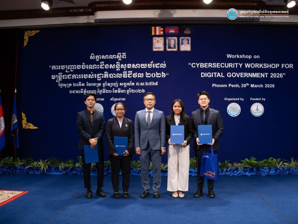 សិក្ខាសាលានេះ បានរៀបចំឡើងចាប់ពីថ្ងៃទី១៨-២០ ខែមីនា ឆ្នាំ២០២៦ ដែលជាកិច្ចសហប្រតិបត្តិការក្នុងការកសាងរដ្ឋាភិបាលឌីជីថលដែលមានភាពធន់ ដោយបង្កើនការយល់ដឹងបន្ថែមនូវហានិភ័យពីការវាយប្រហារសាយប័រ ពង្រឹងសមត្ថភាពក្នុងការការពារ និងត្រៀមខ្លួនឆ្លើយតបទៅនឹងការគំរាមកំហែងទៅលើប្រព័ន្ធអ៊ីនធឺណិតពីការប្រើប្រាស់បច្ចេកវិទ្យាថ្មីៗ ៕