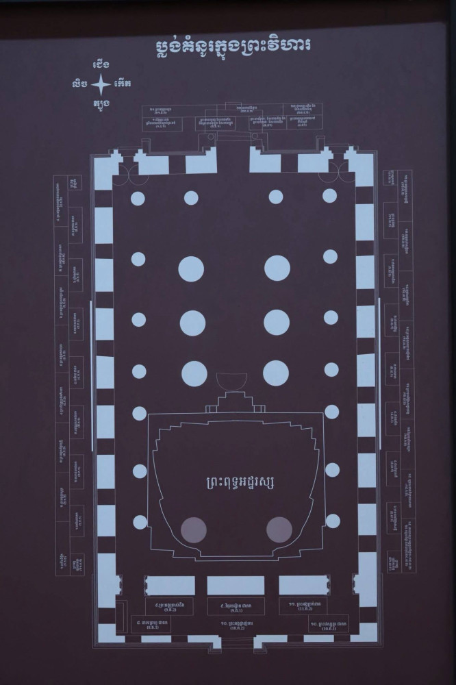 សូមបញ្ជាក់ថា ព្រះពុទ្ធ និងព្រះវិហារអដ្ឋរស្សត្រូវបានសាងសង់ឡើងនៅសម័យកណ្ដាល ប្រហែលជាក្នុងរាជព្រះបាទអង្គច័ន្ទឆ្នាំ១៥៤៦ ដោយប្រើប្រាស់ថ្មប្រាសាទបុរាណសម័យអង្គរនៃរចនាបថឃ្លាំងនាសតវត្សរ៍ទី១១ និងត្រូវបានជួសជុលមកជាបន្តបន្ទាប់ ដោយព្រះមហាក្សត្រ និងអាជ្ញាធរខ្មែររៀងមក។