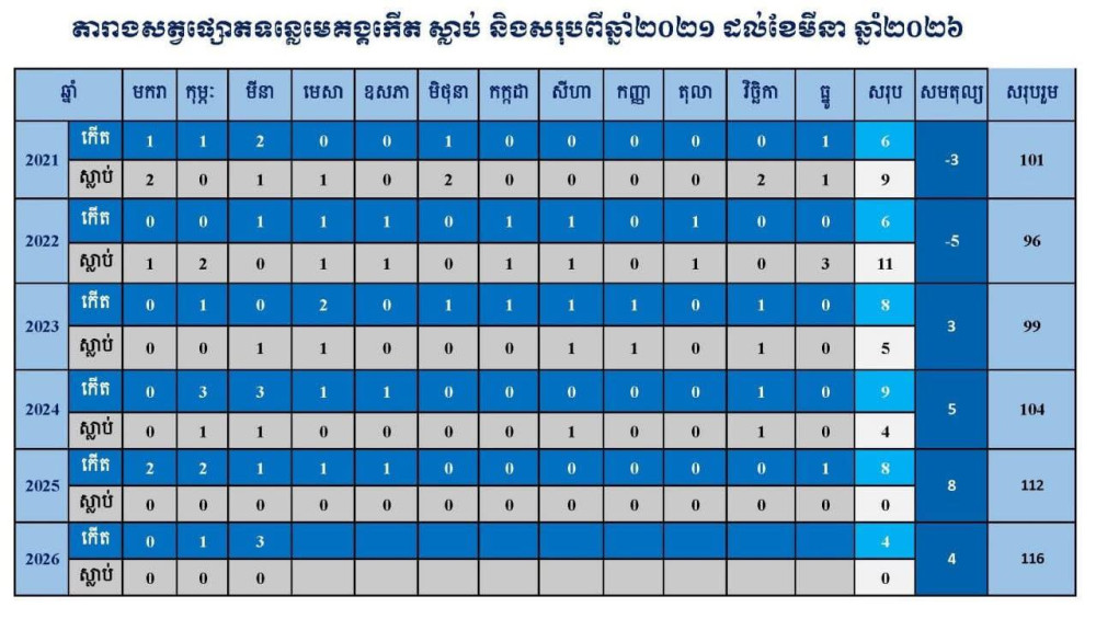 បើតាមក្រសួងកសិកម្ម រុក្ខាប្រមាញ់និងនេសាទឱ្យដឹងថា សម្រាប់ឆ្នាំ២០២៦ នេះជាកូនផ្សោតទី១ កើតនៅខេត្តស្ទឹងត្រែង និងជាកូនផ្សោតទី៤ បើរាប់ទាំងកូនផ្សោតកើតថ្មីនៅខេត្តក្រចេះផង។ តាមរយៈវត្តមានថ្មីនៃកូនផ្សោតនេះ ចំនួនសត្វផ្សោតទន្លេមេគង្គនៅកម្ពុជា មានចំនួនសរុប ១១៦ក្បាល។