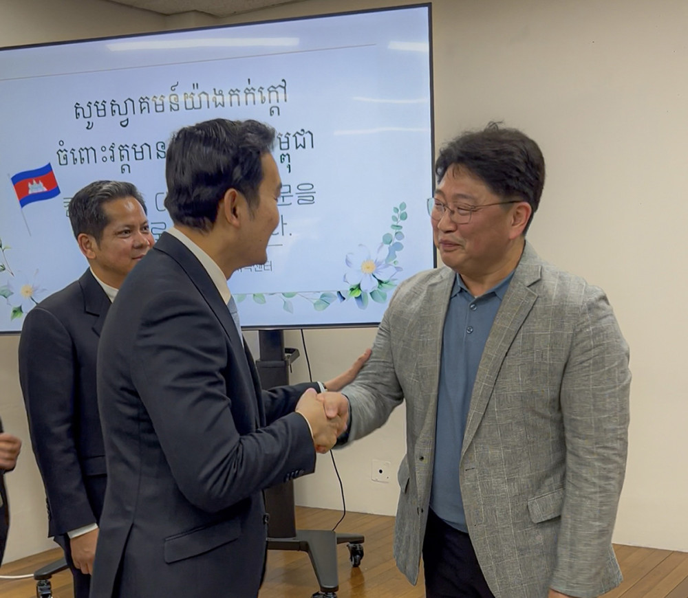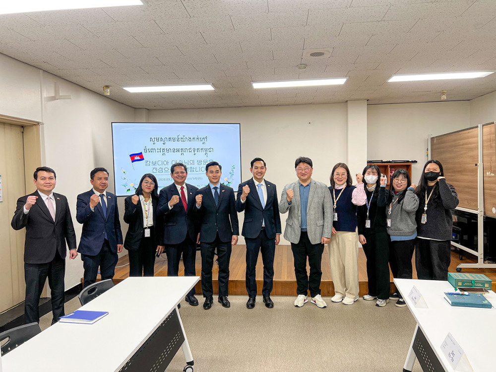 ស្ថានទូតកម្ពុជាប្រចាំសាធារណរដ្ឋកូរ៉េ និងមជ្ឈមណ្ឌល Nonsan Family Center តំបន់នួនសាននៅកូរ៉េ នឹង រៀបចំកម្មវិធីវប្បធម៌ ការពិនិត្យសុខភាពដោយឥតគិតថ្លៃ។ យោងតាមស្ថានឯកអគ្គរាជទូតកម្ពុជាប្រចាំនៅកូរ៉េបានឲ្យដឹងថា នៅថ្ងៃទី២០ ខែមីនា ឆ្នាំ២០២៦ ឯកឧត្តម ឃួន ផុនរតនៈ ឯកអគ្គរាជទូតកម្ពុជាប្រចាំសាធារណរដ្ឋកូរ៉េ និងសហការី បានអញ្ជើញជួបសំណេះសំណាល និងពិភាក្សាការងារជាមួយលោក Kim Seongsu ប្រធានមជ្ឈមណ្ឌល Nonsan Family Center តំបន់នួនសាន ព្រមទាំងបានថ្លែងអំណរគុណដល់លោកប្រធានមជ្ឈមណ្ឌល ដែលតែងតែ ជួយយកចិត្តទុកដាក់ដោះស្រាយរាល់បញ្ហាប្រឈមនានារបស់ពលករខ្មែរ និងសហគមន៍ខ្មែរនៅតំបន់នួនសានកន្លងមក។