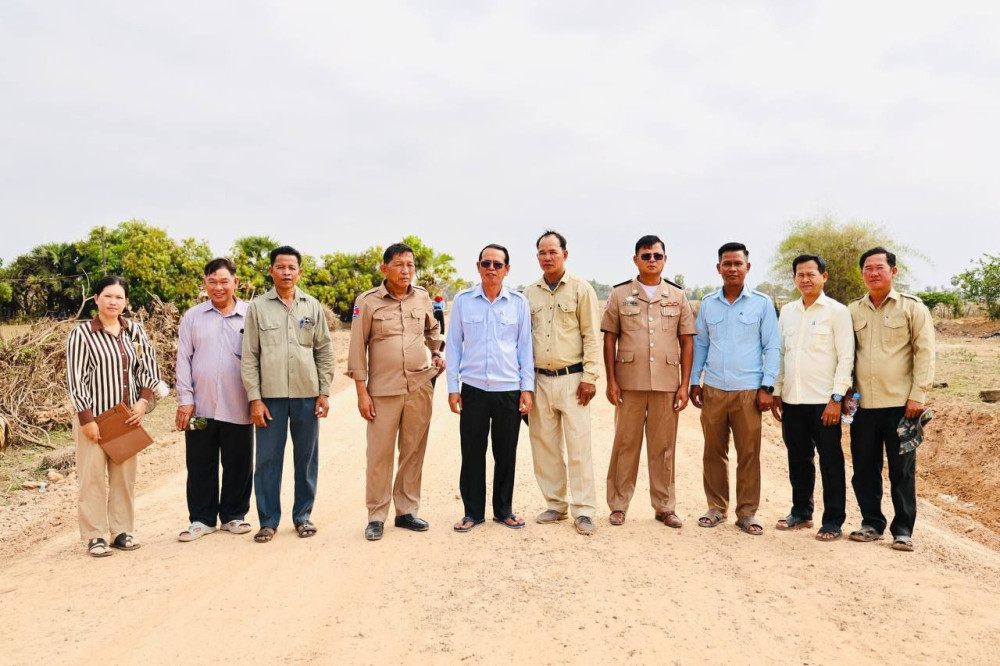 AKP កំពង់ធំ ថ្ងៃទី២៤ ខែមីនា ឆ្នាំ២០២៦--លោកសាយ គឹមឡមអភិបាលស្រុកស្ទោងលើកទឹកចិត្តអាជ្ញាធរឃុំឱ្យអភិវឌ្ឍមូលដ្ឋានដោយឆ្លើយតបទៅនឹងតម្រូវការជាអាទិភាពរបស់ពលរដ្ឋខ្លួននៅក្នុងឱកាសដែលលោក និងសហការី ព្រមទាំងមន្ត្រីជំនាញបច្ចេកទេសរដ្ឋបាលខេត្តកំពង់ធំ អាជ្ញាធរឃុំព្រះដំរីអញ្ជើញចុះពិនិត្យវាយតម្លៃសម្រេចនៃការធ្វើផ្លូវដែលជាថវិកាមូលនិធិឃុំកាលពីថ្ងៃទី២៣ ខែមីនា ឆ្នាំ២០២៦។