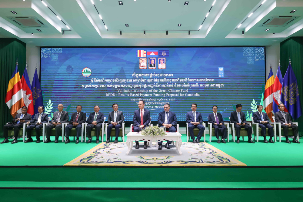 នៅក្នុងឱកាសអញ្ជើញជាអធិបតី ក្នុងកម្មវិធីបើកសិក្ខាសាលាផ្តល់សុពលភាព ស្តីពី «ការរៀបចំសំណើគម្រោងហិរញ្ញប្បទាន សម្រាប់ការទូទាត់ផ្អែកលើលទ្ធផលពីមូលនិធិអាកាសធាតុបៃតង សម្រាប់គម្រោងការកាត់បន្ថយការបញ្ចេញឧស្ម័នផ្ទះកញ្ចក់ ពីការបាត់បង់ និងរេចរិលព្រៃឈើ (រេដបូក)នៅកម្ពុជា» នៅទីស្តីការក្រសួងបរិស្ថាន នាថ្ងៃទី២៤ ខែមីនា ឆ្នាំ២០២៦ ឯកឧត្តមរដ្ឋមន្រ្តី មានប្រសាសន៍លើកឡើងលើវិធានការទាំងនេះ ដែលបាននិងកំពុងអនុវត្តស្របតាម គោលនយោបាយយុទ្ធសាស្រ្តរបស់រាជរដ្ឋាភិបាលកម្ពុជា ក៏ដូចជាយុទ្ធសាស្ត្រចក្រាវិស័យបរិស្ថាន ដើម្បីការពារតំបន់ការពារធម្មជាតិ ចូលរួមចំណែកលើកកម្ពស់ជីវភាព របស់សហគមន៍មូលដ្ឋាន ជាពិសេសជនជាតិដើមភាគតិច និងការគ្រប់គ្រង និងប្រើប្រាស់ធនធានធម្មជាតិប្រកបដោយនិរន្តរភាព។
