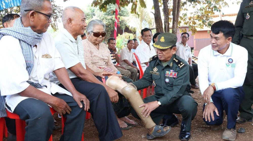AKP កំពង់ធំថ្ងៃទី២៥ខែមីនា ឆ្នាំ២០២៦--ឧត្តមសេនីយ៍ទោ សោម ស៊ុន មេបញ្ជាការ តំបន់ប្រតិបត្តិការសឹករង អនុប្រធានប្រចាំការ និងជាប្រធានលេខាធិការដ្ឋាន នៃគណៈកម្មាធិការសមាគមអតីតយុទ្ធជននិងនិវត្តជនកម្ពុជា ខេត្តកំពង់ធំ តំណាងឯកឧត្ដម នួន ផារ័ត្ន អភិបាលខេត្ត ប្រធានគណៈកម្មាធិការសមាគមអតីតយុទ្ធជននិងនិវត្តជនកម្ពុជា ខេត្តកំពង់ធំ អមដំណើរដោយលោក ជួន សិលាវិត ប្រធានសាខាមូលនិធិជាតិជំនួយសង្គមខេត្តអនុប្រធានសមាគមអតីតយុទ្ធជននិងនិវត្តជនកម្ពុជាខេត្តកំពង់ធំ និងលោក យ៉ង់ វិសាលអភិបាលរងស្រុកតាំងគោកកាលពីរសៀលថ្ងៃទី២៤ខែមីនាឆ្នាំ២០២៦បានដឹកនាំសហការី ទៅប្រគល់ផ្ទះថ្មី០១ខ្នងដែលជាខ្នងទី២៣ ក្នុងស្រុកតាំងគោក អំណោយដ៏ថ្លៃថ្លារបស់សម្ដេចអគ្គមហាសេនាបតីតេជោ ហ៊ុន សែន ប្រធានព្រឹទ្ធសភា និងជាប្រធានសមាគមអតីតយុទ្ធជននិងវត្តជនកម្ពុជា និងសម្ដេចកិត្តិព្រឹទ្ធបណ្ឌិត ប៊ុន រ៉ានី ហ៊ុនសែន ជូនអតីតយុទ្ធជនពិការ ដែលមានដី តែមានជម្រកស្នាក់នៅមិនសមរម្យ នៅភូមិដំរីស្លាប់ ឃុំអណ្ដូងពោធិ៍ ស្រុកតាំងគោក ខេត្តកំពង់ធំ ។