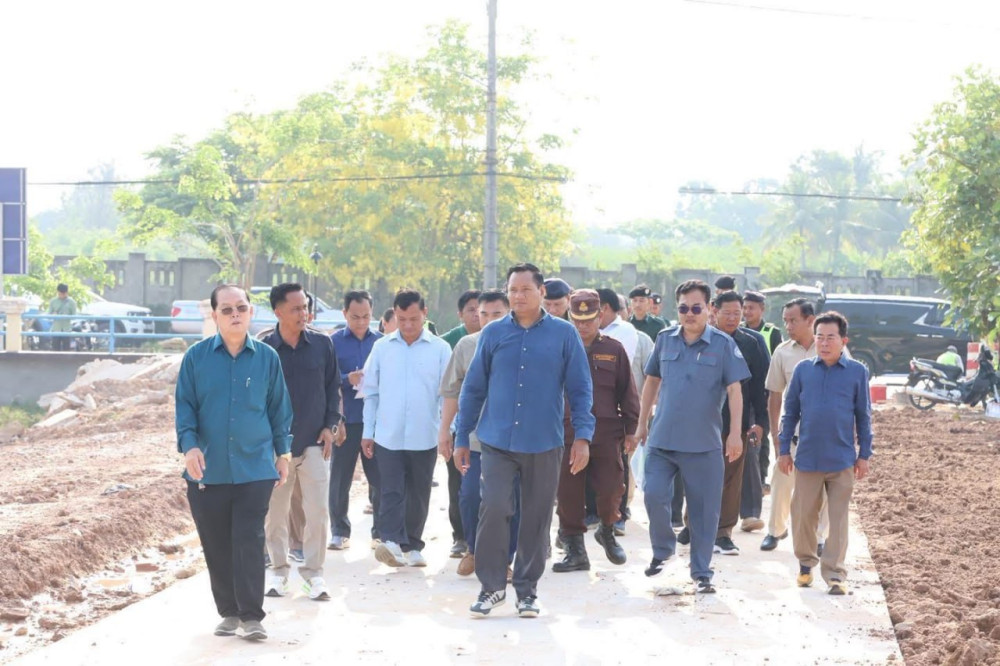 AKP ឧត្តរមានជ័យ ថ្ងៃទី២៥ ខែមីនា ឆ្នាំ២០២៦--ឯកឧត្តម មាន ចាន់យ៉ាដា អភិបាលនៃគណៈអភិបាលខេត្តឧត្តរមានជ័យ និងជាប្រធានគណៈបញ្ជាការឯកភាពរដ្ឋបាលខេត្ត ដឹកនាំក្រុមការងារបច្ចេកទេស និងមន្ត្រីជំនាញពាក់ព័ន្ធ ចុះត្រួតពិនិត្យផ្ទាល់នូវវឌ្ឍនភាពការដ្ឋានស្ថាបនាផ្លូវភ្លោះ និងសួនព្រះនាងគង្ហីងថ្មី កាលពីថ្ងៃអង្គារ ទី២៤ ខែមីនា ឆ្នាំ២០២៦ ។