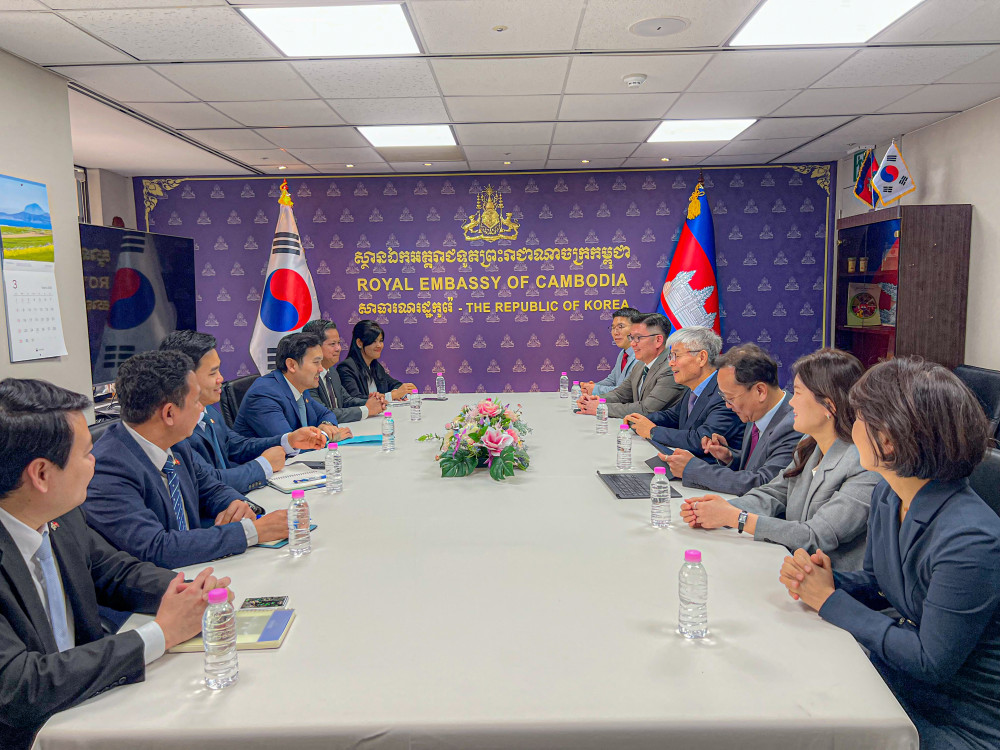ឯកឧត្តម ឃួន ផុនរតនៈ ឯកអគ្គរាជទូតកម្ពុជាប្រចាំសាធារណរដ្ឋកូរ៉េ កាលពីថ្ងៃទី ២៣ ខែមីនា ឆ្នាំ២០២៦បានទទួលជួបសម្តែងការគួរសម និងសំណេះសំណាលការងារជាមួយក្រុមគណៈប្រតិភូនៃសាកលវិទ្យាល័យជុងវ៉ុន (Jungwon University) ដឹកនាំដោយលោក JANG Kiwon សាកលវិទ្យាធិការនៃសាកលវិទ្យាល័យជុងវ៉ុន នៅស្ថានទូតកម្ពុជាក្នុងទីក្រុងសេអ៊ូល។