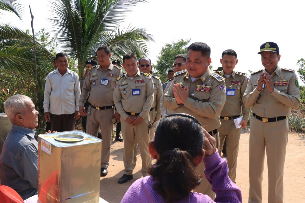 លោកឧត្តមសេនីយ៍ទោស្នងការ បានឧបត្ថម្ភ គ្រឿងឧបភោគបរិភោគរួមមាន អតីតយុទ្ធជន ៧គ្រួសារក្នុងមួយគ្រួសារទទួលបានអង្ករ ៤០គីឡូក្រាម នំចំនួន ០១ធុងនិងថវិកា ១០ម៉ឺនរៀល លោកមេភូមិថវិកា ១០ម៉ឺនរៀល និងកម្លាំងប្រជាការពារ ១៥នាក់ ម្នាក់ៗទទួលបានថវិកាមួយចំនួនផងដែរ។