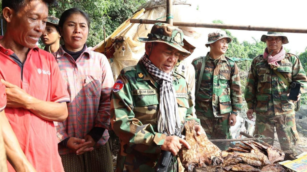 AKP កំពង់ធំ ថ្ងៃទី២៨ ខែមីនា ឆ្នាំ២០២៦--ឧត្ដមសេនីយ៍ទោ សោម ស៊ុន មេបញ្ជាការតំបន់ប្រតិបត្តិការសឹករងកំពង់ធំ អនុប្រធានអចិន្ដ្រៃយ៍នៃគណៈកម្មការគ្រប់គ្រងការពារ ទប់ស្កាត់ និងបង្ក្រាបបទល្មើសធនធានធម្មជាតិ កាលពីរសៀលថ្ងៃទី២៧ខែមីនាឆ្នាំ២០២៦ បានដឹកនាំសហការី និងស្ថាប័នជំនាញពាក់ព័ន្ធ ទៅជួបសំណេះសំណាលជាមួយប្រជាពលរដ្ឋ ដែលប្រកបរបរនេសាទ ធ្វើត្រីឆ្អើរ ផ្អក ប្រហុកសម្រាប់ដោះស្រាយជីវភាពគ្រួសារ និងការលក់ដូរបន្តិចបន្តួច នៅក្នុងរដូវប្រាំង ក្រោយពីសម្រាកពីការងារច្រូតកាត់ប្រមូលផលស្រូវ នៅភូមិទួលនាងសាវ ឃុំផាត់សណ្ដាយ ស្រុកកំពង់ស្វាយ ខេត្តកំពង់ធំ។