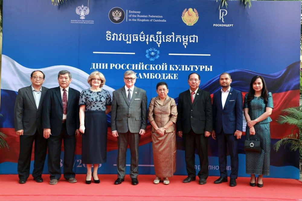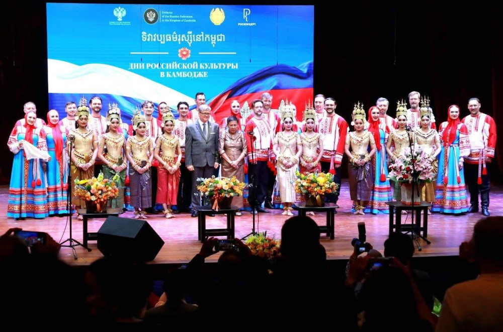 AKP ភ្នំពេញ ថ្ងៃទី២៩ ខែមីនា ឆ្នាំ២០២៦ -- ដើម្បីអបអរសាទរព្រឹត្តិការណ៍ទិវាវប្បធម៌រុស្ស៊ីនៅកម្ពុជាឆ្នាំ២០២៦ ដែលជាផ្នែកនៃការអបអរសាទរខួបលើកទី៧០ នៃការបង្កើតទំនាក់ទំនងការទូតកម្ពុជា-រុស្ស៊ី ក្រសួងវប្បធម៌ និងទូតរុស្ស៊ី បានរៀបចំពិព័រណ៍វត្ថុសិល្បៈ សម្លៀកបំពាក់ប្រពៃណី និងការសម្តែងសិល្បៈអបអរសាទរខួបលើកទី៧០ នៃការបង្កើតទំនាក់ទំនងការទូតកម្ពុជា-រុស្ស៊ី។ ទិវាវប្បធម៌រុស្ស៊ីនៅកម្ពុជា ដែលបានរៀបចំឡើងនាល្ងាចថ្ងៃទី២៨ ខែមីនា ឆ្នាំ២០២៦ មានការចូលរួមពីសំណាក់លោកជំទាវបណ្ឌិតសភាចារ្យ ភឿង សកុណា រដ្ឋមន្ត្រីក្រសួងវប្បធម៌ និងវិចិត្រសិល្បៈ និងឯកឧត្តម Anatoly Borovik ឯកឧត្តមអគ្គរដ្ឋទូតវិសាមញ្ញនិងពេញសមត្ថភាពនៃសហព័ន្ធរុស្ស៊ីប្រចាំព្រះរាជាណាចក្រកម្ពុជា នៅសាលសន្និសីទចតុម្មុខ។