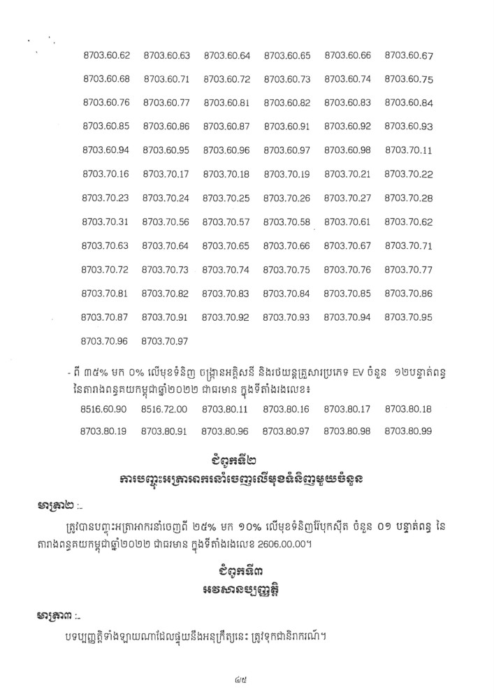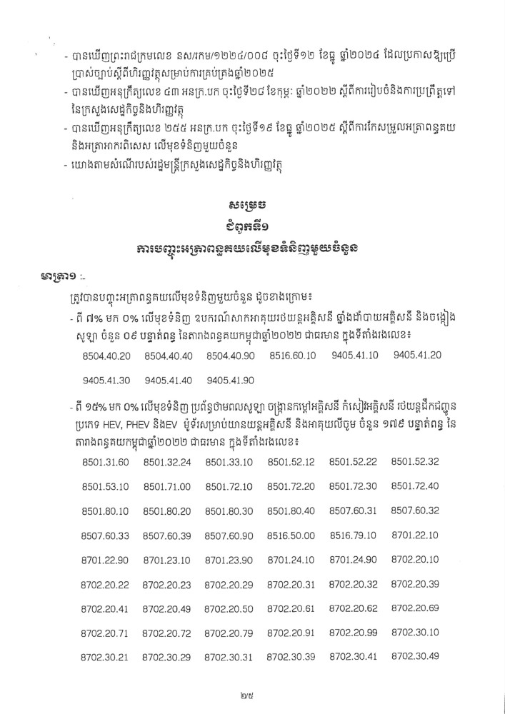 អនុក្រឹត្យស្តីពីការកែសម្រួលអត្រាពន្ធគយ និងអត្រាអាករនាំចេញ លើមុខទំនិញមួយចំនួន