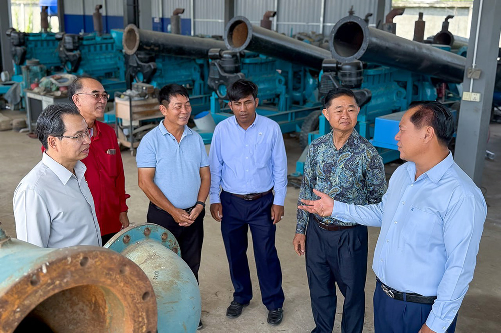 AKP ភ្នំពេញ ថ្ងៃទី៣០ ខែមីនា ឆ្នាំ២០២៦--ឯកឧត្តម ឈា ប៊ុនរិទ្ធ រដ្ឋលេខាធិការប្រចាំការ ក្នុងនាមតំណាងឯកឧត្តម ថោ ជេដ្ឋា រដ្ឋមន្ត្រីក្រសួងធនធានទឹក និងឧតុនិយម នាព្រឹកថ្ងៃចន្ទទី៣០ ខែមីនា ឆ្នាំ២០២៦ បានអញ្ជើញចុះពិនិត្យស្ថានភាពជាក់ស្តែង និងវឌ្ឍនភាពការងារនៅជម្រកគ្រឿងចក្រ ស្ថិតក្នុងឃុំគោករមៀត ស្រុកកណ្តាលស្ទឹង ខេត្តកណ្តាល អមដំណើរដោយលោក ផាង វី ប្រធាននាយកដ្ឋានធារាសាស្ត្រកសិកម្ម ព្រមទាំងមន្ត្រីបច្ចេកទេសពាក់ព័ន្ធជាច្រើនរូប។