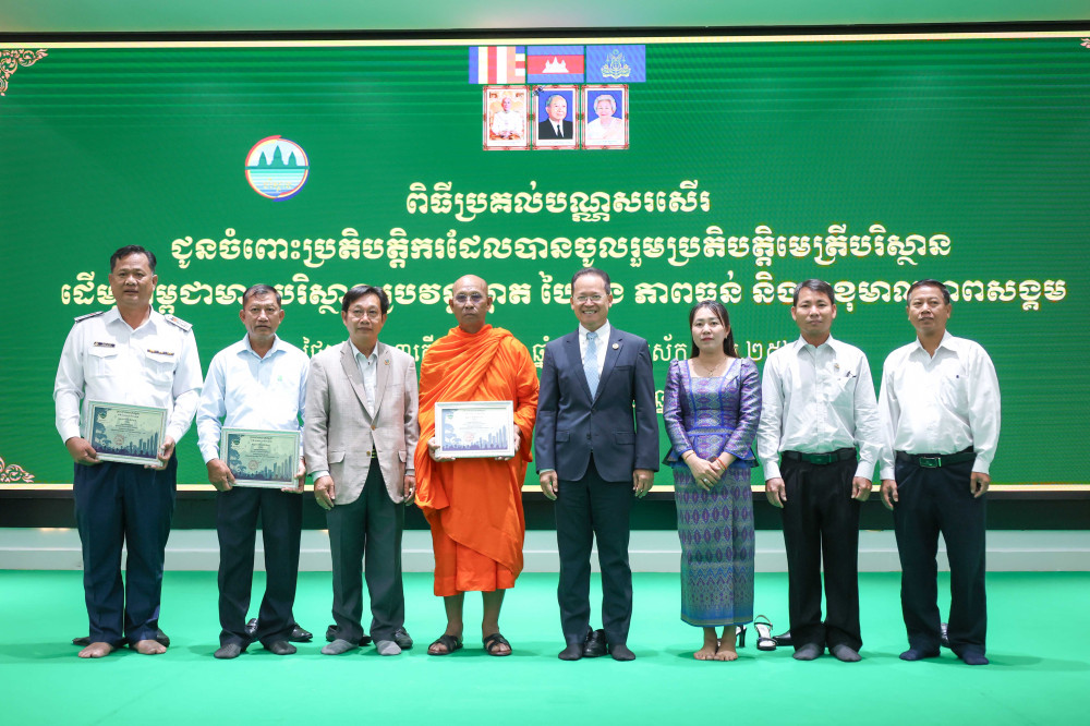 សូមបញ្ជាក់ថា ក្រុមការងារនាយកដ្ឋានរង្វាន់និងលើកទឹកចិត្ត នៃអគ្គនាយកដ្ឋានចំណេះដឹងនិងព័ត៌មានបរិស្ថាន សហការជាមួយ ក្រុមការងារវាយតម្លៃគុណវុឌ្ឍិមេត្រីបរិស្ថាន របស់មន្ទីរបរិស្ថានរាជធានី ខេត្ត បានធ្វើការវាយតម្លៃ និងជ្រើសរើសរូបវន្តបុគ្គល និងនីតិបុគ្គល ទាំងវិស័យសាធារណៈ និងវិស័យឯកជន ដែលបានប្រតិបត្តិមេត្រីបរិស្ថានបានល្អប្រសើរ ឆ្លើយតបទៅនឹងយុទ្ធសាស្ត្រចក្រាវិស័យបរិស្ថាន តាមរយៈការអនុវត្ត «ភាពស្អាត» «ភាពបៃតង» និង«ចីរភាព» ដើម្បីធានាបាននូវចីរភាពបរិស្ថាននៅកម្ពុជា បានចំនួន ៥០៣បណ្ណ និងប្រតិបត្តិករចំនួន៥៤អង្គភាព/ស្ថាប័ន និងមន្ត្រីឧទ្យានុរក្សចំនួន៩៩រូប បានទទួលក្នុងឆ្នាំ២០២៦។