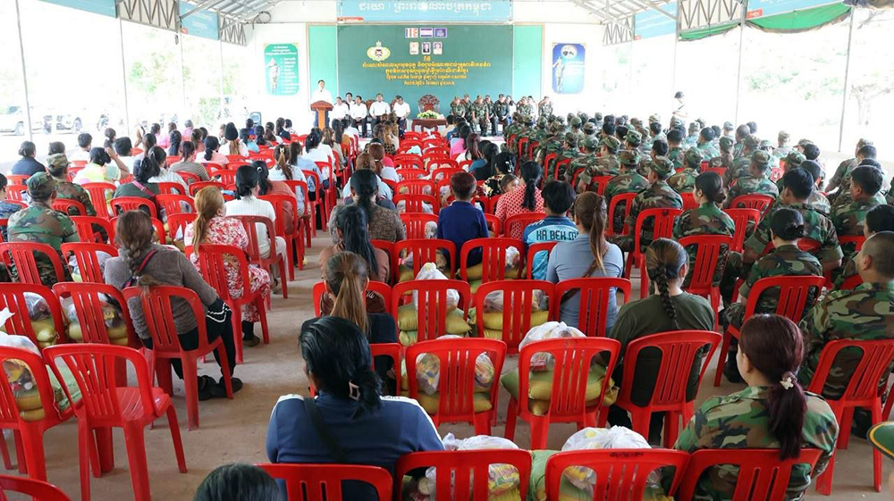 ឧត្តមសេនីយ៍ទោ សោម ស៊ុន មេបញ្ជាការតំបន់ប្រតិបត្តិការសឹករងកំពង់ធំ បានឡើងធ្វើរបាយការណ៍ស្វាគមន៍ និងបានគោរពថ្លែងអំណរគុណដ៏ជ្រាលជ្រៅជាទីបំផុតចំពោះឯកឧត្តម នួន ផារ័ត្ន អភិបាលខេត្ត ប្រធានគណៈបញ្ជាការឯកភាពរដ្ឋបាលខេត្តកំពង់ធំ ដោយកន្លងទៅនេះឯកឧត្តម និងលោកជំទាវ បានជួយឧបត្ថម្ភគាំទ្រគ្រប់បែបយ៉ាងដល់កងកម្លាំងនៃបញ្ជាការដ្ឋានតំបន់ប្រតិបត្តិការសឹករងកំពង់ធំ ក្នុងបេសកកម្មការពារបូរណភាពទឹកដី ក៏ដូចជាការបំពេញភារកិច្ចក្នុងការ ការពារ ទប់ស្កាត់ និងបង្ក្រាបបទល្មើសធនធានធម្មជាតិ នៅក្នុងភូមិសាស្ត្រខេត្តកំពង់ធំ។ ដោយឡែក នៅក្នុងឱកាសបុណ្យចូលឆ្នាំថ្មី ដែលនឹងឈានមកដល់នៅពេលខាងមុខនេះឯកឧត្តម បានជួយឧបត្ថម្ភបន្ថែមទៀត ដល់ក្រុមគ្រួសារយោធិនមួយចំនួន នៅក្នុងទីបញ្ជាការតំបន់ប្រតិបត្តិការសឹករងកំពង់ធំ និងកងវរសេនាតូចចំណុះទាំងពីរ ដោយក្នុងមួយគ្រួសារទទួលបាននូវអង្ករចំនួន២៥គីឡូក្រាម ឃីតមួយកញ្ចប់ និងថវិកាចំនួន៥ម៉ឺនរៀល។