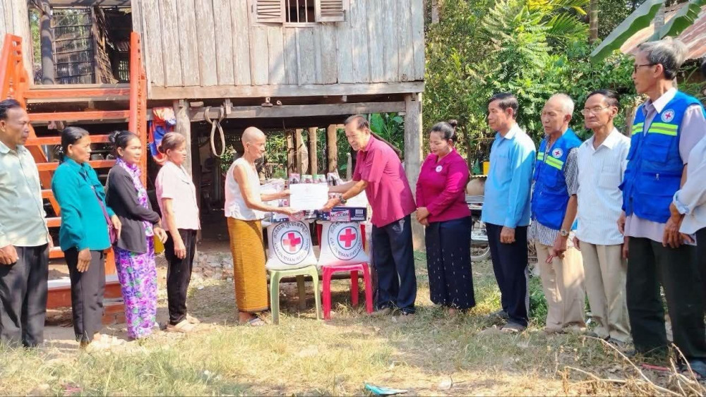 AKP កំពង់ចាម ថ្ងៃ០១ ខែមេសា ឆ្នាំ២០២៦ -- គ្រួសាររងគ្រោះដោយអគ្គីភ័យមួយគ្រួសារ នៅឃុំព្រែកតានង់ ស្រុកកោះសូទិន ទទួលបានអំណោយពីសាខាកាកបាទក្រហមកម្ពុជាខេត្តកំពង់ចាម នៅព្រឹកថ្ងៃទី០១ ខែមេសា ឆ្នាំ២០២៦ នេះ តាមរយៈឯកឧត្តម ទូច ឆៃ នាយកសាខា តំណាងដ៏ខ្ពង់ខ្ពស់របស់ឯកឧត្តម អ៊ុន ចាន់ដា ប្រធានគណ:កម្មាធិការសាខា។