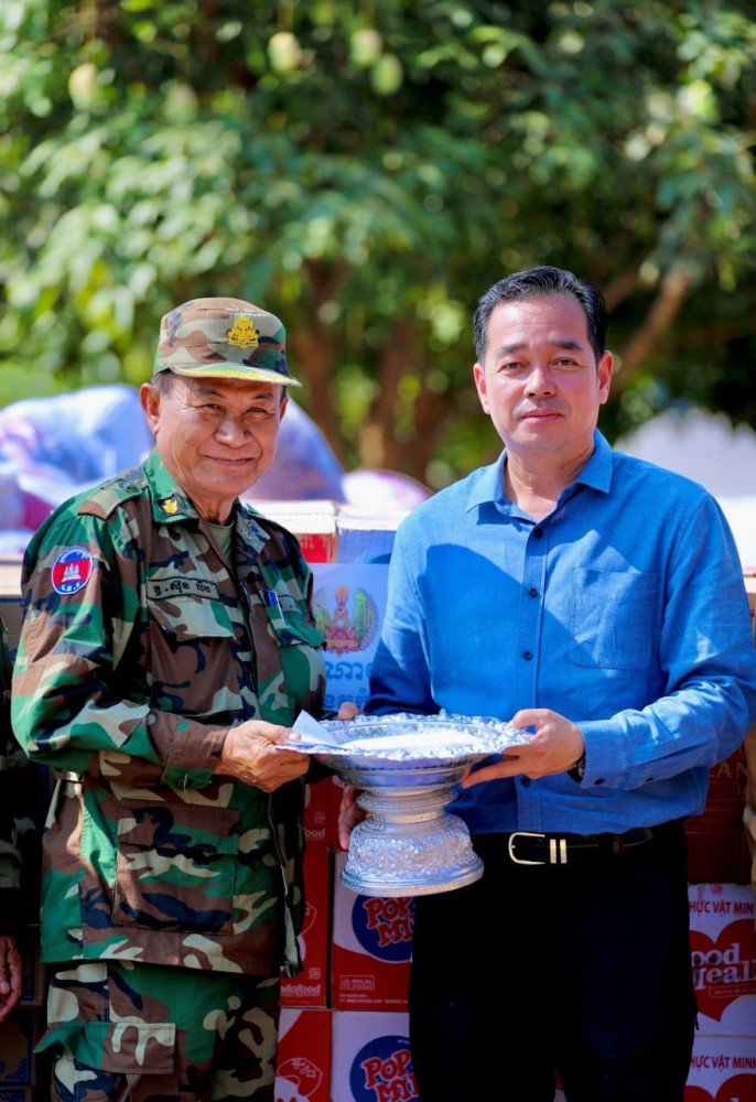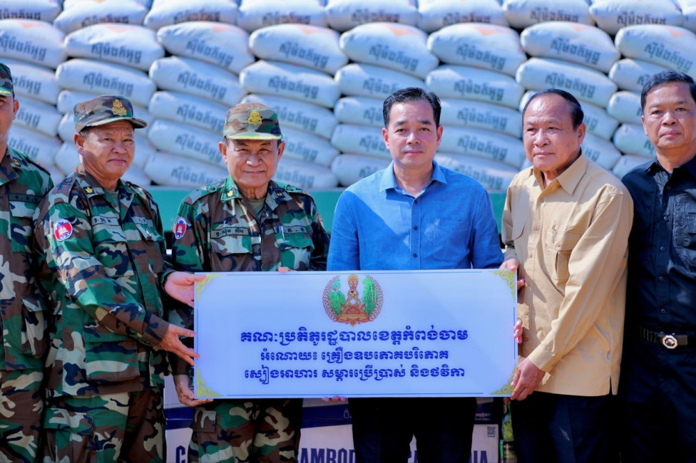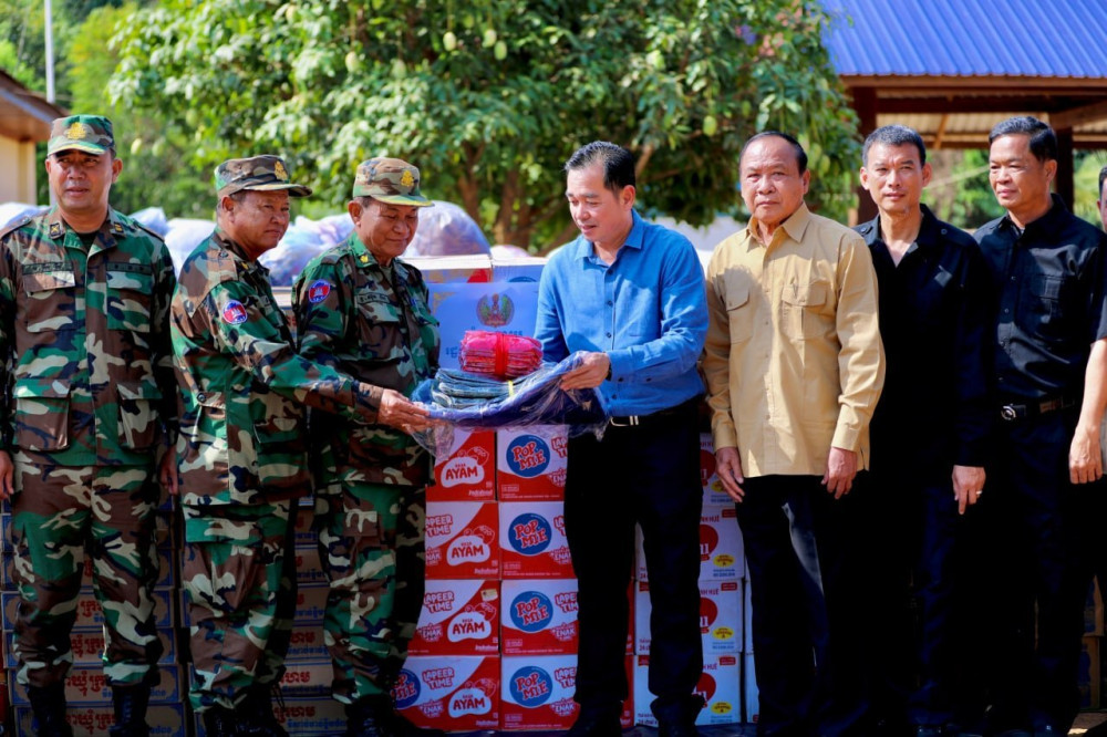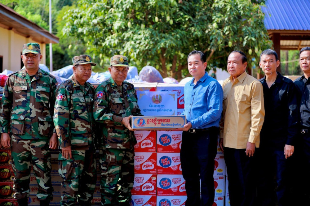 អភិបាលខេត្តកំពង់ចាមដឹកនាំប្រតិភូចុះសួរសុខទុក្ខ និងនាំយកអំណោយសម្តេចមហាបវរធិបតី និងលោកជំទាវបណ្ឌិតយ៉ាងច្រើនសន្ធឹកសន្ធាប់ទៅប្រគល់ជូនកងទ័ពនៅជួរមុខ
