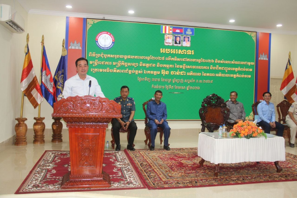 ការលើកឡើងរបស់ឯកឧត្តមអភិបាលខេត្ត ក្នុងឱកាសអញ្ជើញជា អធិបតីភាពក្នុងកិច្ចប្រជុំបូកសរុបលទ្ធផលការងារឆ្នាំ២០២៥ និងលើកទិសដៅបន្តឆ្នាំ២០២៦ និងសំណេះសំណាលជាមួយ មន្ត្រីរាជការ មន្ត្រីកិច្ចសន្យានិវត្តជន និងកម្មករនៃមន្ទីរសាធារណការ និងដឹកជញ្ជូនខេត្តកំពង់ចាម នៅរសៀលថ្ងៃទី០៥ ខែមេសា ឆ្នាំ២០២៦ នៅមន្ទីរសាធារណការនិងដឹកជញ្ជូន។
