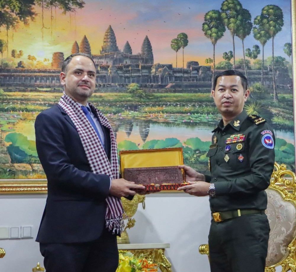 AKP ភ្នំពេញ ថ្ងៃទី០៦ ខែមេសា ឆ្នាំ២០២៦--នាមជ្ឈមណ្ឌលជាតិរក្សាសន្តិភាព ព្រឹកថ្ងៃទី០៦ ខែមេសា ឆ្នាំ២០២៦ ឯកឧត្តម ឧត្តមសេនីយ៍ទោ សែម រតនា អគ្គនាយកស្តីទីមជ្ឈមណ្ឌលជាតិរក្សាសន្តិភាពបានទទួលជួបជាមួយលោក Monsieur Kaloyan KOLEV មន្ត្រីនៃគម្រោងកិច្ចសហប្រតិបត្តិការបារាំង (OIF) ដោយបានពិភាក្សាពីការសិក្សាភាសាបារាំង សម្រាប់សិស្សភាសាបារាំងរបស់មជ្ឈមណ្ឌលជាតិ។