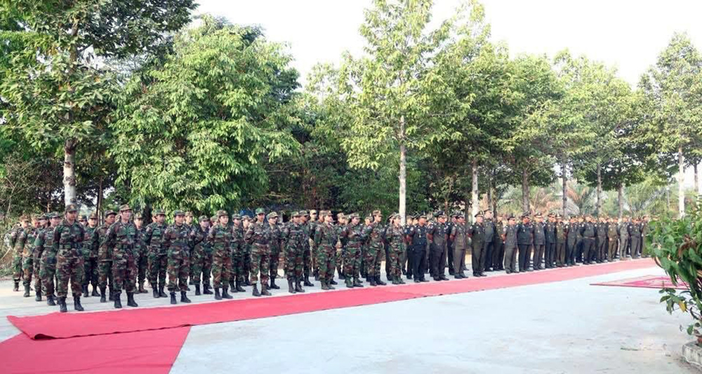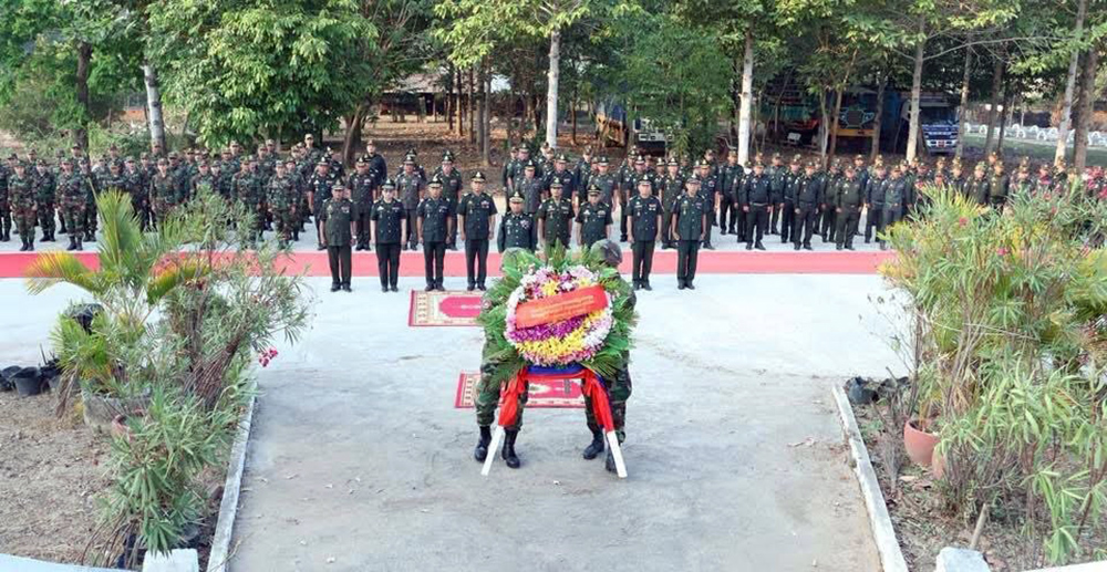 យេីងខ្ញុំទាំងអស់គ្នាជានាយទាហាន នាយទាហានរង និងពលទាហាន នៃបញ្ជាការដ្ឋានតំបន់ប្រតិបត្តិការសឹករងកំពង់ធំ សូមគោរពបួងសួងសុំឱ្យវិញ្ញាណក្ខន្ធកម្មាភិបាល យុទ្ធជន ដែលបានពលីជីវិត ដើម្បីបុព្វហេតុជាតិនិងប្រជាជនកម្ពុជា សូមបានទៅកាន់សុគតិភពកុំបីឃ្លៀងឃ្លាតឡើយ។