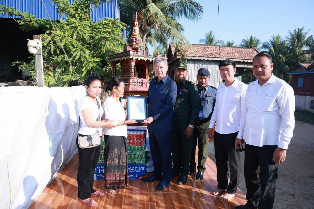 ឆ្លៀតក្នុងឱកាសនេះ ឯកឧត្ដមអភិបាលខេត្តកណ្ដាល បានប្រគល់គ្រឿងឧបភោគបរិភោគ និងថវិការបស់សម្តេចមហាបវរធិបតី ហ៊ុន ម៉ាណែត ជូនគ្រួសារនៃសព រួមមាន អង្ករ ១០០គីឡូក្រាម ទឹកសុទ្ធ ១០កេស ទឹកក្រូច និងភេសជ្ជៈ ៥កេស មី ៥កេស ត្រីខ ៥យួរ និងថវិកាចំនួន ៤០លានរៀល៕