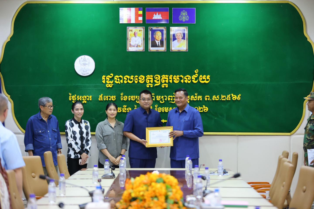 AKP ភ្នំពេញ ថ្ងៃទី០៧ ខែមេសា ឆ្នាំ២០២៦-- ឯកឧត្តម ប៉េង ពោធិ៍នា រដ្ឋមន្ត្រីក្រសួងសាធារណការ និងដឹកជញ្ជូន ព្រមទាំងលោកជំទាវ បានអញ្ជើញដឹកនាំគណៈប្រតិភូក្រសួង ចុះសំណេះសំណាល សួរសុខទុក្ខ និងនាំយកអំណោយចែកជូនដល់វីរកងទ័ពជួរមុខ រួមមាន កងការពារព្រំដែនគោកលេខ៤០២ លេខ៤០៣ និងបញ្ជាការដ្ឋានកាំភ្លើងធំ អគ្គបញ្ជាការដ្ឋាន ដែលស្ថិតនៅក្នុងភូមិសាស្រ្តខេត្តឧត្តរមានជ័យ នាព្រឹកថ្ងៃអង្គារ ទី០៧ ខែមេសា ឆ្នាំ២០២៦ ដោយមានការចូលរួមពីឯកឧត្តម មាន ចាន់យ៉ាដា អភិបាលនៃគណៈអភិបាលខេត្តឧត្តរមានជ័យ ឯកឧត្តម លោកជំទាវ ថ្នាក់ដឹកនាំក្រសួង ឯកឧត្តមឧត្តមសេនីយ៍ត្រី មាស ប៊ុង មេបញ្ជាការរង បញ្ជាការដ្ឋានកាំភ្លើងធំ អគ្គបញ្ជាការដ្ឋាន លោកវរសេនីយ៍ត្រី សៀក សំអ៊ុល មេបញ្ជាការស្តីទី កងការពារព្រំដែនគោកលេខ៤០២ លោកវរសេនីយ៍ឯក ជុំ សេង មេបញ្ជាការកងការពារព្រំដែនគោកលេខ៤០៣ ព្រមទាំងមន្ត្រីពាក់ព័ន្ធជាច្រើនរូប។