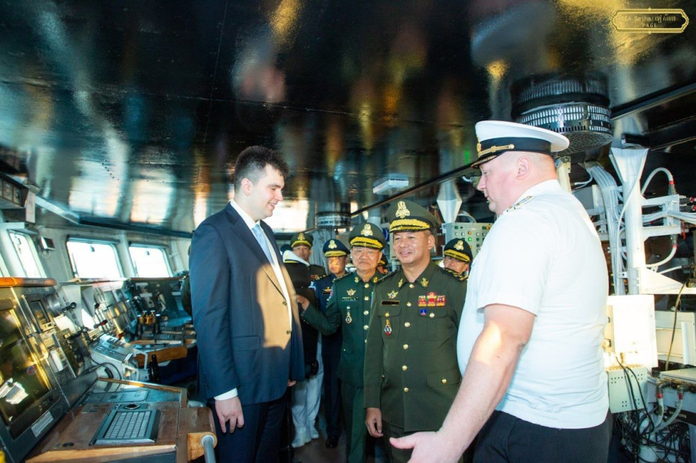ឯកឧត្តមនាយឧត្តមសេនីយ៍ ទៀ សីហា ឧបនាយករដ្ឋមន្ត្រី រដ្ឋមន្ត្រីក្រសួងការពារជាតិ នាថ្ងៃទី៧ ខែមេសា ឆ្នាំ២០២៦ អញ្ជើញទទួលស្វាគមន៍ និងទស្សនកិច្ចលើនាវាចម្បាំងរបស់រុស្ស៊ីចំនួន ២គ្រឿង ដែលមានឈ្មោះ Sovershenny លេខ៣៣៣ និង Rezky លេខ៣៤៣ មកពីកងនាវាប្រចាំតំបន់ប៉ាស៊ីហ្វិកនៃកងទ័ពជើងទឹកសហព័ន្ធរុស្ស៊ី ដែលបានចូលចតនៅកំពង់ផែស្វយ័តក្រុងព្រះសីហនុ កាលពីថ្ងៃទី៦ ខែមេសា ឆ្នាំ២០២៦ ដើម្បីបំពេញទស្សនកិច្ចរយៈពេល៣ថ្ងៃនៅកម្ពុជា ជាមួយនាវិកសរុបប្រមាណ ២៦២នាក់ ដោយមានវត្តមានឯកឧត្តម Anatoly Borovik ឯកអគ្គរដ្ឋទូតសហព័ន្ធរុស្ស៊ីប្រចាំកម្ពុជា ចូលរួមផងដែរ។