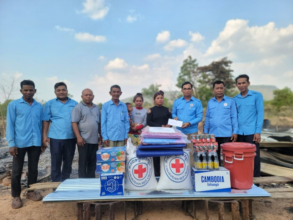 អនុប្រធានគណៈកម្មាធិការ អនុសាខាកាកបាទក្រហមកម្ពុជាស្រុកគូលែន នាំយកអំណោយមនុស្សធម៌ផ្តល់ជូនគ្រួសាររងគ្រោះដោយសារភ្លើងឆេះផ្ទះ