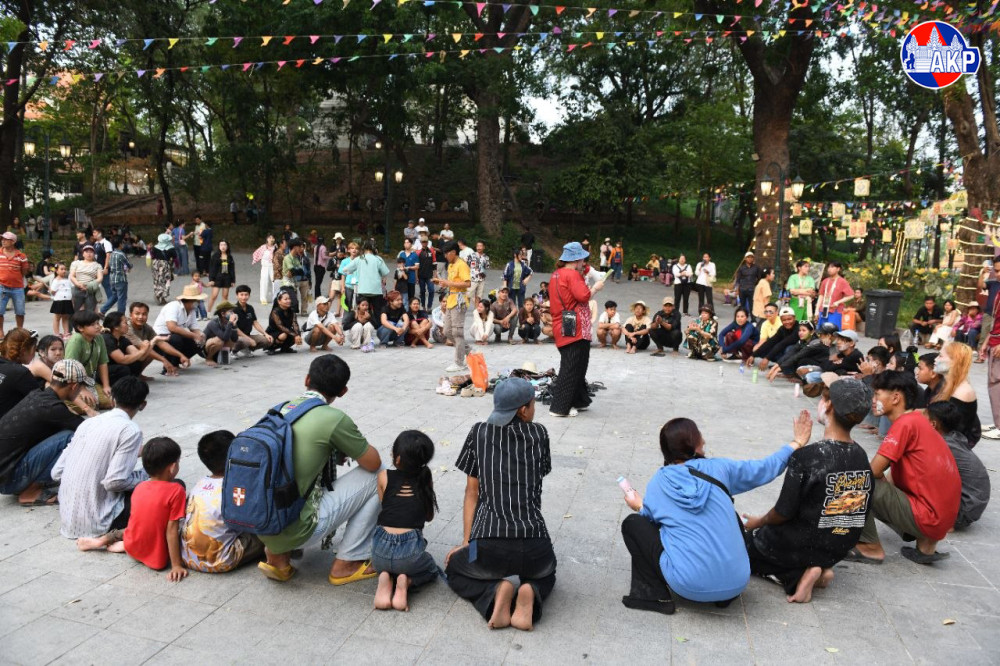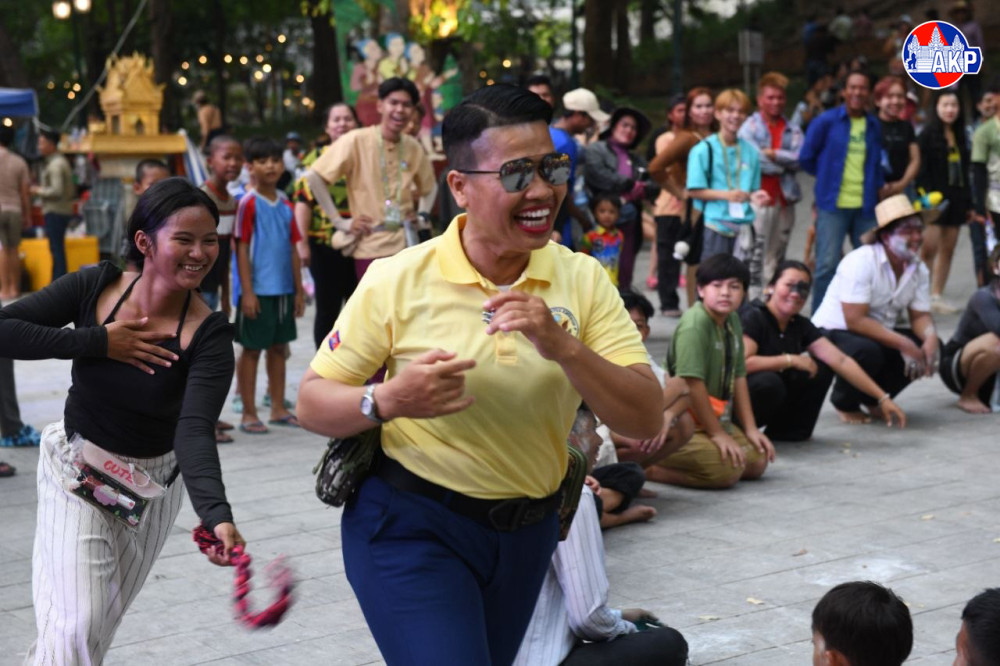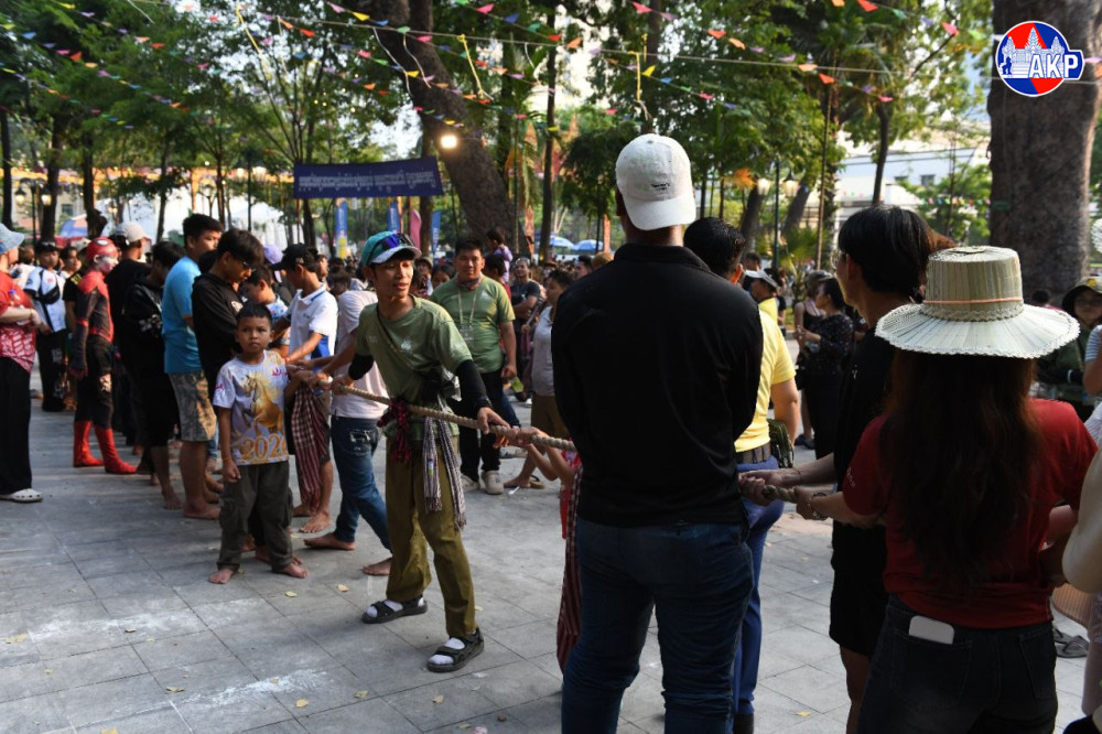 បងប្អូនប្រជាពលរដ្ឋចូលរួមលេងល្បែងប្រជាប្រិយខ្មែរ ដូចជាលាក់កន្សែង ចោលឈូង និងទាញព្រ័ត្រ នៅរមណីយដ្ឋានប្រវត្តិសាស្ត្រវត្តភ្នំ នាល្ងាចថ្ងៃទី១៧ ខែមេសា ឆ្នាំ២០២៦ ដែលជាថ្ងៃទីបួន នៃព្រឹត្តិការណ៍ «នគរសង្រ្កាន្ត»។