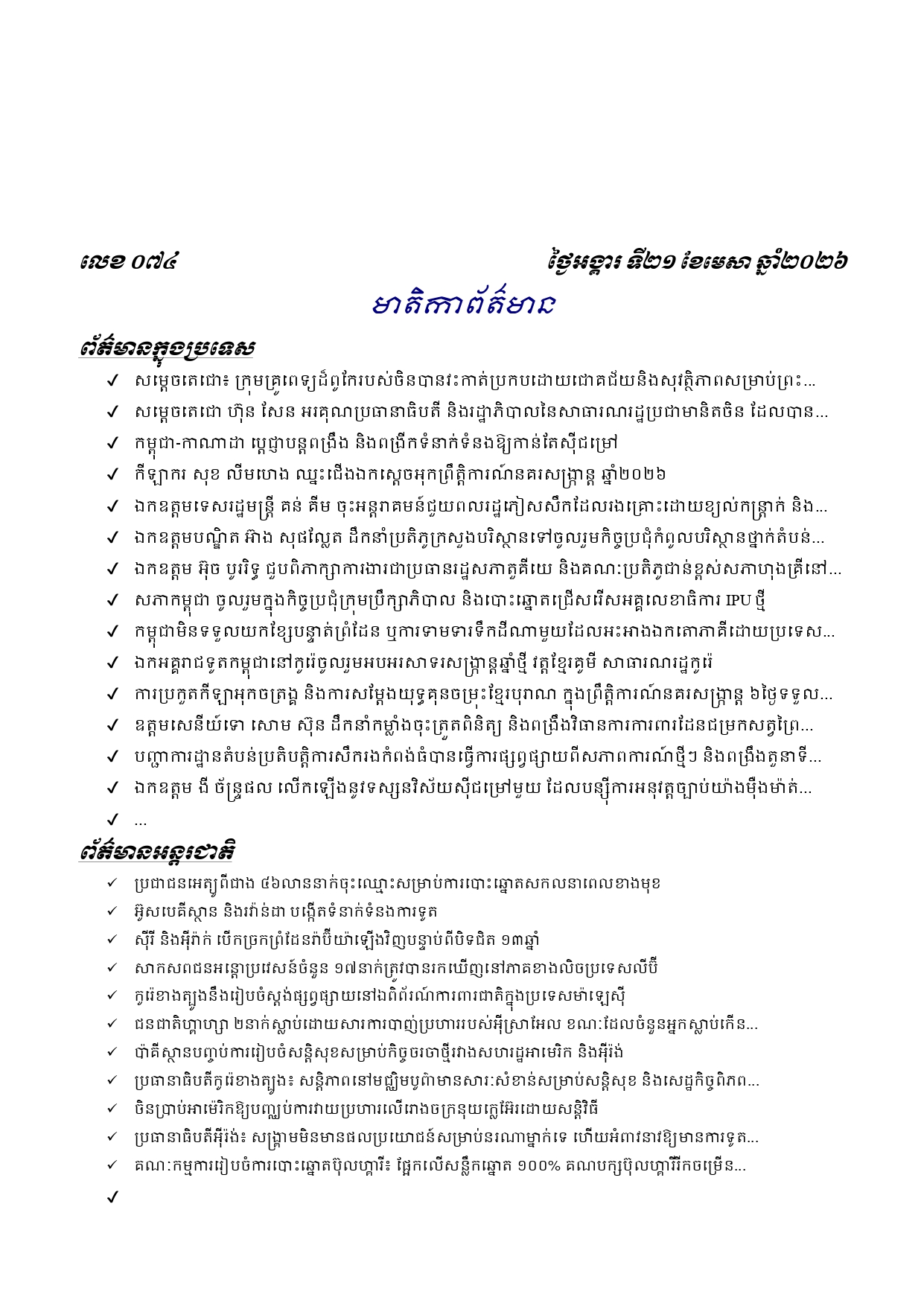 ក្រសួងកសិម្មបានឱ្យដឹងថាកិច្ចប្រជុំនេះបានធ្វើឡើងកាលពីថ្ងៃទី២០ ខែមេសា ឆ្នាំ២០២៦ ដែលដឹកនាំដោយឯកឧត្តម សៀក ឡេង អនុរដ្ឋលេខាធិការ ទទួលបន្ទុកការងារឌីជីថល ក្រសួងកសិកម្ម រុក្ខាប្រមាញ់ និងនេសាទ។