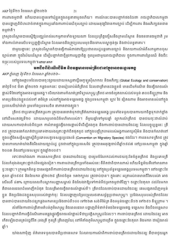 AKP ភ្នំពេញ ថ្ងៃទី២១ ខែមេសា ឆ្នាំ២០២៦ -