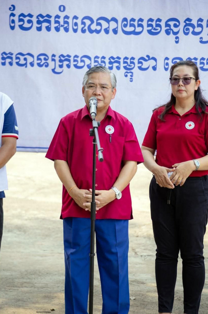 លោកបានសង្កត់ធ្ងន់ថា ទោះស្ថិតក្នុងកាលៈទេសៈណាក៏ដោយ កាកបាទក្រហមកម្ពុជាតែងតែនៅក្បែរបងប្អូនជានិច្ច ស្របតាមពាក្យស្លោក «កាកបាទក្រហមកម្ពុជាមានគ្រប់ទីកន្លែង សម្រាប់គ្រប់ៗគ្នា មិនទុកនរណាម្នាក់ចោល»។ ក្រៅពីការផ្ដល់ជំនួយ លោកអនុប្រធានក៏បានសង្កត់ធ្ងន់លើចំណុចសំខាន់ៗមួយចំនួនដើម្បីសុវត្ថិភាពសហគមន៍ ត្រូវពិនិត្យ និងចងរឹតបន្ថែមរចនាសម្ព័ន្ធផ្ទះសម្បែង ដើម្បីទប់ទល់នឹងបាតុភូតខ្យល់កន្ត្រាក់ដែលកើតមានជាយថាហេតុក្នុងរដូវប្រែប្រួលអាកាសធាតុ។ បង្កើនការប្រុងប្រយ័ត្នខ្ពស់ក្នុងការប្រើប្រាស់ចរន្តអគ្គិសនី និងភ្លើងចង្ក្រាន ពិសេសក្នុងរដូវក្ដៅ។ បន្តអនុវត្តន៍វិធានការការពារជំងឺឆ្លង និងយកចិត្តទុកដាក់លើរបបអាហារ កាត់បន្ថយប្រៃ-ផ្អែម-ខ្លាញ់ ដើម្បីបង្ការជំងឺមិនឆ្លង។
