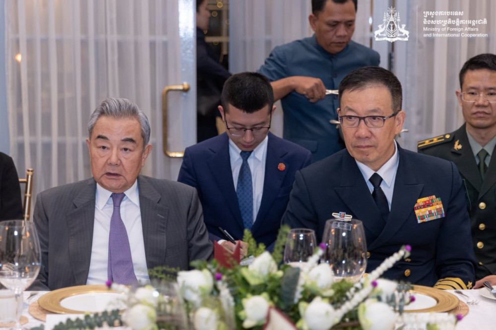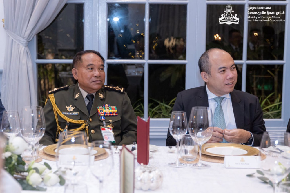 ឯកឧត្តមឧបនាយករដ្ឋមន្ត្រី ប្រាក់ សុខុន រដ្ឋមន្ត្រីការបរទេស និងសហប្រតិបត្តិការអន្តរជាតិ និងឯកឧត្តមឧបនាយករដ្ឋមន្ត្រី ទៀ សីហា រដ្ឋមន្ត្រីការពារជាតិ នៃព្រះរាជាណាចក្រកម្ពុជា រៀបចំអាហារពេលល្ងាចដើម្បីជាកិត្តិយសជូនឯកឧត្តម វ៉ាង យី (Wang Yi) រដ្ឋមន្ត្រីការបរទេស និងឯកឧត្តម តុង ជុន (Dong Jun) រដ្ឋមន្ត្រីការពារជាតិ នៃសាធារណរដ្ឋប្រជាមានិតចិន ក្នុងឱកាសអញ្ជើញចូលរួមកិច្ចប្រជុំលើកទី១ នៃកិច្ចសន្ទនាយុទ្ធសាស្ត្រ "២+២" រវាងរដ្ឋមន្ត្រីការបរទេស និងរដ្ឋមន្ត្រីការពារជាតិកម្ពុជា និងចិន នៅរាជធានីភ្នំពេញ នាថ្ងៃទី២២ ខែមេសា ឆ្នាំ២០២៦។