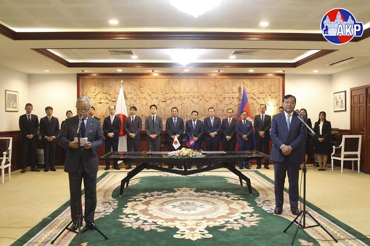 ឯកឧត្តម ប្រាក់ សុខុន ឧបនាយករដ្ឋមន្ត្រី រដ្ឋមន្ត្រីការបរទេស និងសហប្រតិបត្តិការអន្តរជាតិ និងឯកឧត្តម UENO Atsushi ឯកអគ្គរាជទូតជប៉ុន ប្រចាំនៅព្រះរាជាណាចក្រកម្ពុជា អញ្ជើញចុះហត្ថលេខាលើលិខិតប្តូរសារ និងឯកសារពាក់ព័ន្ធស្តីពីការផ្តល់ឥណទានសម្បទានប្រាក់យ៉េន នារសៀលថ្ងៃទី២៣ ខែមេសា ឆ្នាំ២០២៦ នៅទីស្តីការក្រសួង រាជធានីភ្នំពេញ ។