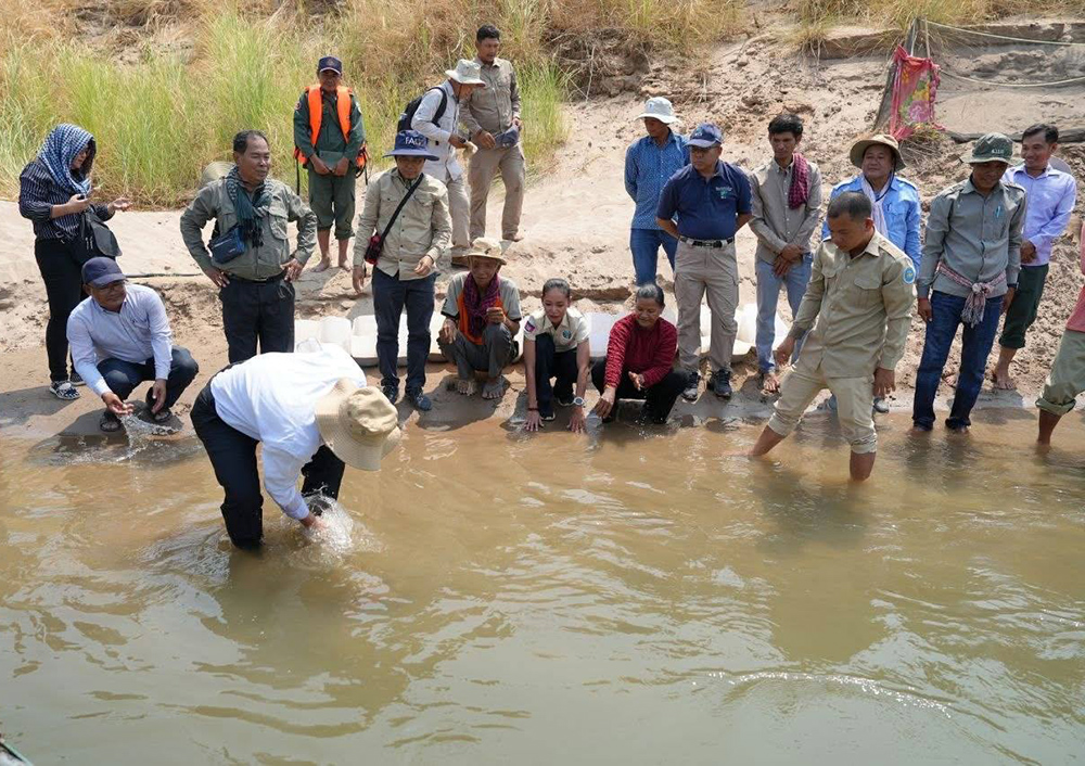 សត្វកន្ធាយក្បាលកង្កែបជាប្រភេទសត្វជិតផុតពូជចំនួន១៥ក្បាល ត្រូវបានលែងចូលទៅក្នុងដែនទឹកធម្មជាតិ ក្នុងខេត្តក្រចេះវិញ