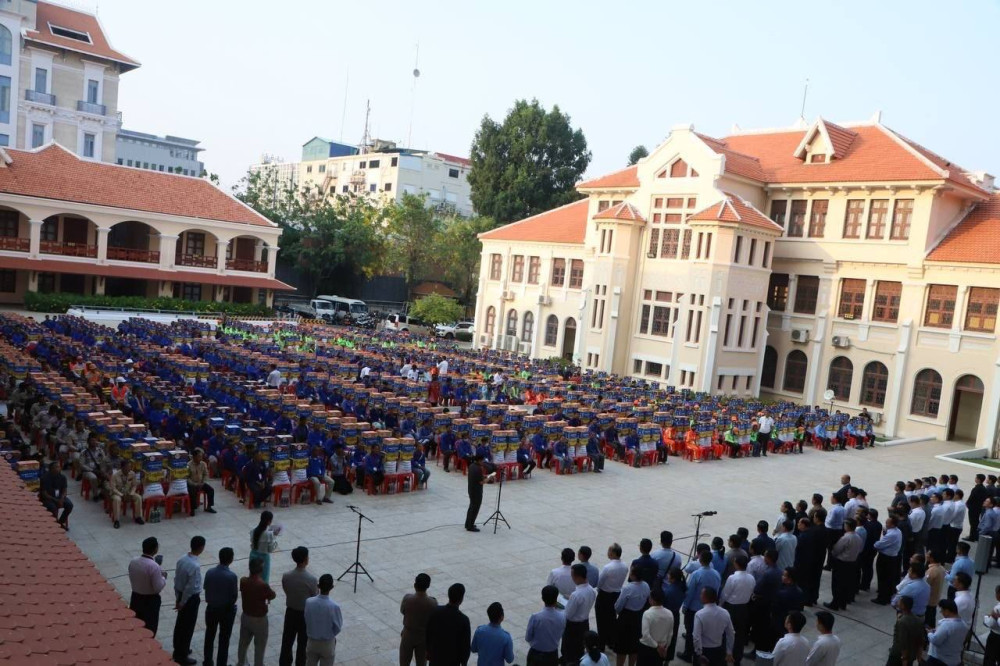 ឯកឧត្តម ហ៊ុន ម៉ានី ឧបនាយករដ្ឋមន្ត្រី រដ្ឋមន្ត្រី ក្រសួងមុខងារសាធារណៈ និងជាប្រធានសហភាពសហព័ន្ធយុវជនកម្ពុជា អញ្ជើញជួបសំណេះសំណាល និងចែកអំណោយជាថវិកា គ្រឿងឧបភោគបរិភោគ ជូនដល់បុគ្គលិកសម្អាតអនាម័យ និងប្រជាការពារ ចំនួន ៧០៦នាក់ ដែលបានប្រតិបត្តិការផ្ទាល់ បោសសម្អាតអនាម័យ ក្នុងព្រឹត្តិការណ៍នគរសង្ក្រាន្ត ឆ្នាំ២០២៦ នារសៀលថ្ងៃទី២៣ ខែមេសា ឆ្នាំ២០២៦ នៅបរិវេណសាលារាជធានីភ្នំពេញ។