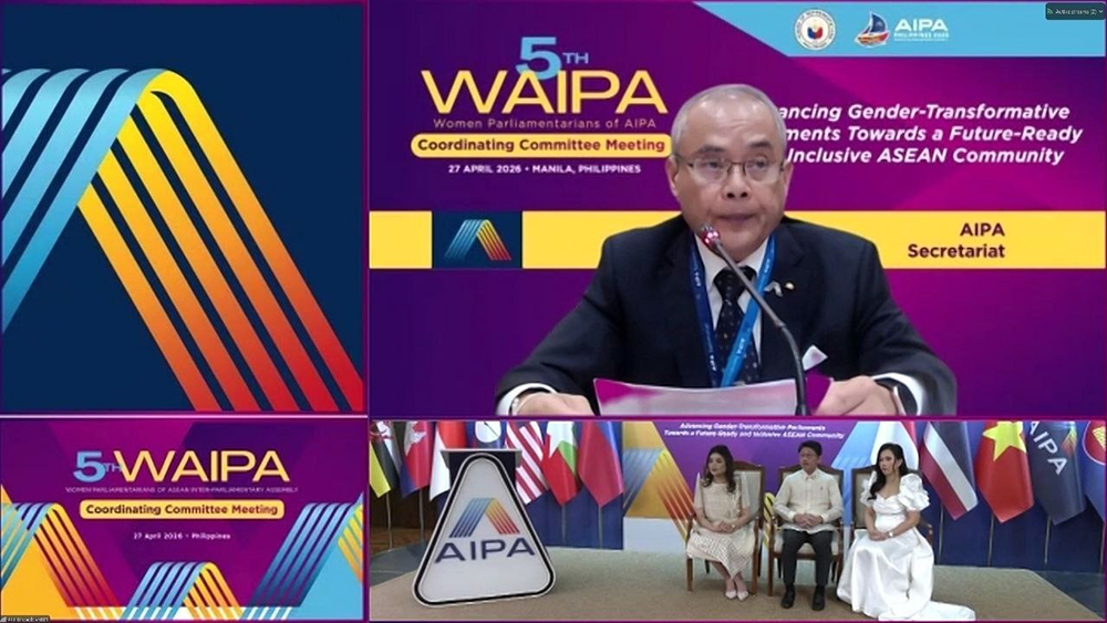 AKP ភ្នំពេញ ថ្ងៃទី២៧ ខែមេសា ឆ្នាំ២០២៦--លោកជំទាវ ឯក សុវណ្ណភារៈ សមាជិកាក្រុមសភាជាតិកម្ពុជានៃអ្នកនយោបាយសភាស្ត្រី និងជាសមាជិកាគណៈកម្មការទី៣ នៃរដ្ឋសភា នៅព្រឹកថ្ងៃទី២៧ ខែមេសា ឆ្នាំ២០២៦ បានតំណាងឱ្យរដ្ឋសភាកម្ពុជា ចូលរួមកិច្ចប្រជុំលើកទី៥ នៃគណៈកម្មាធិការសម្របសម្រួលសមាជិកសភាស្ត្រីអាយប៉ា (WAIPA) តាមប្រព័ន្ធនិម្មិត ដែលរៀបចំឡើងដោយរដ្ឋសភានៃប្រទេសហ្វីលីពីន។