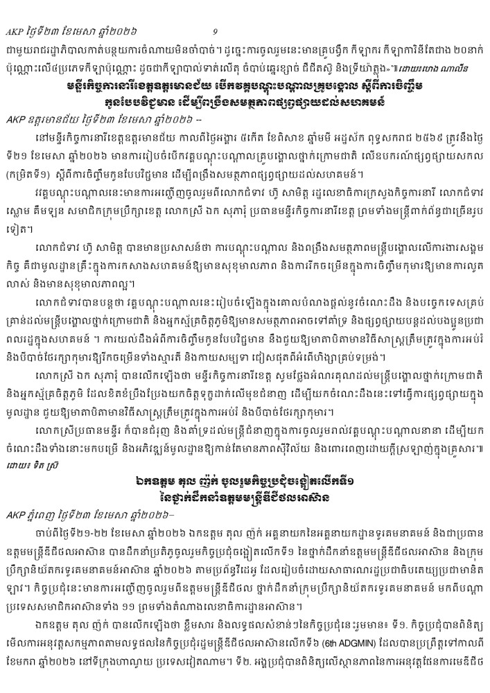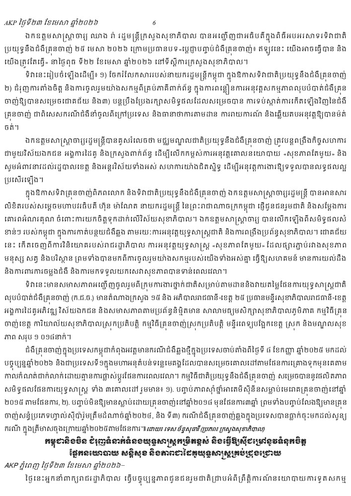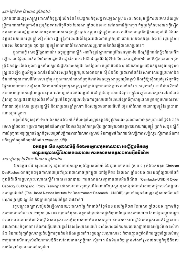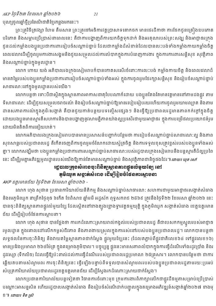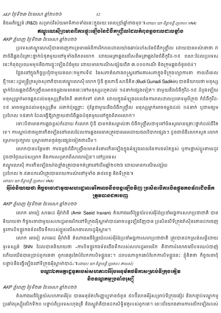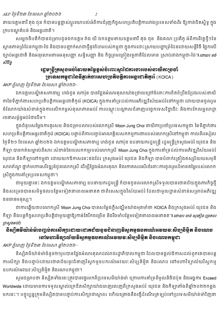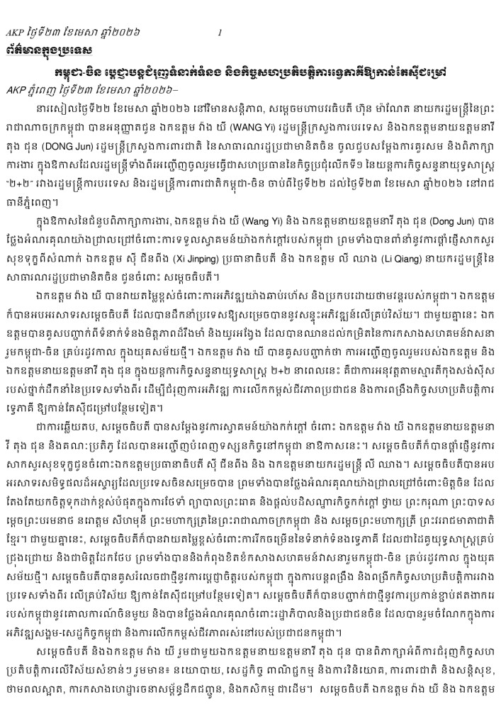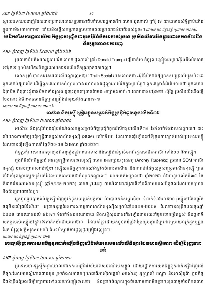 AKP ភ្នំពេញ ថ្ងៃទី២៣ ខែមេសា ឆ្នាំ២០២៦ -