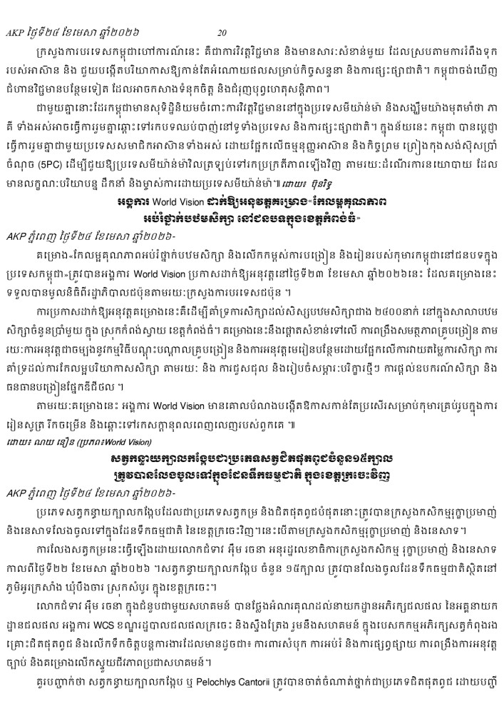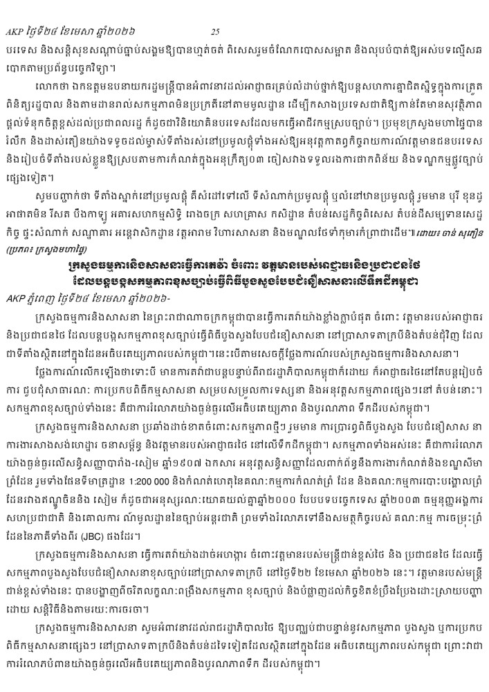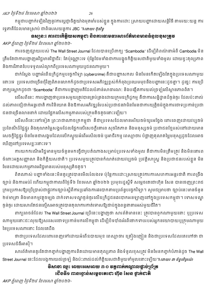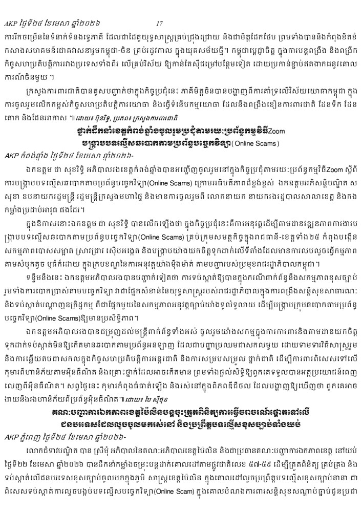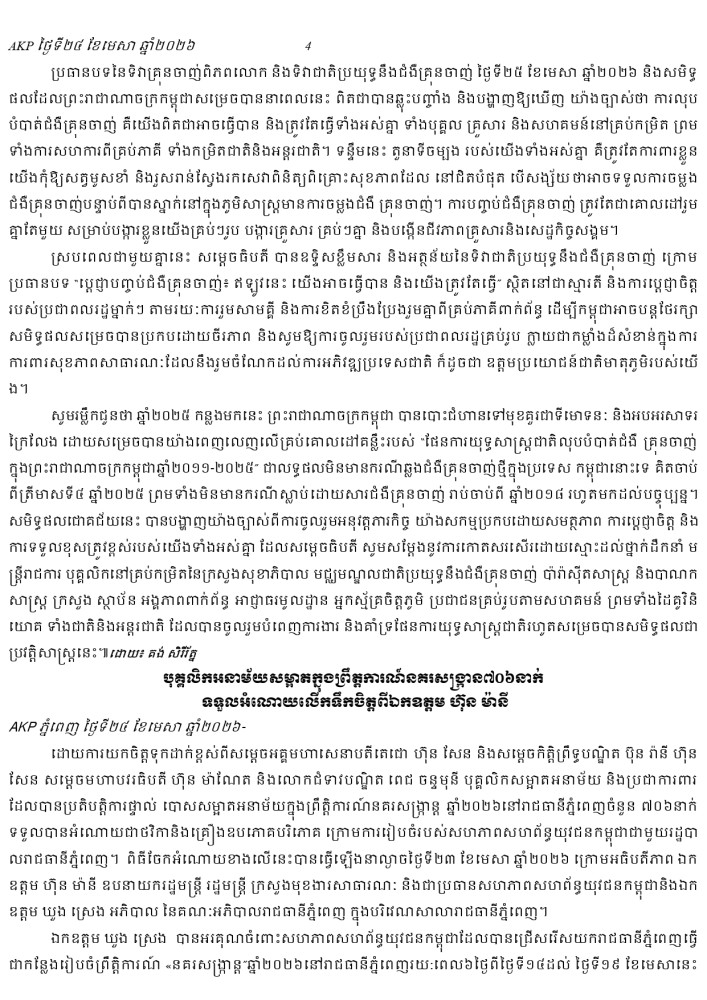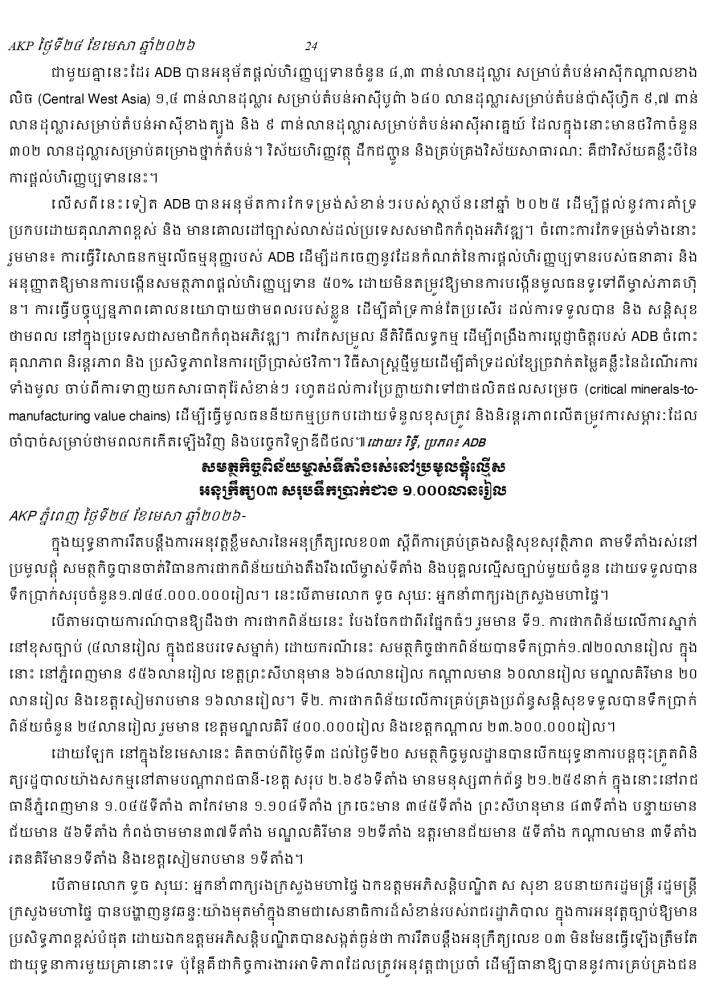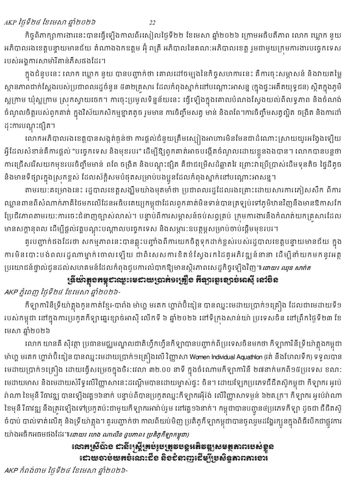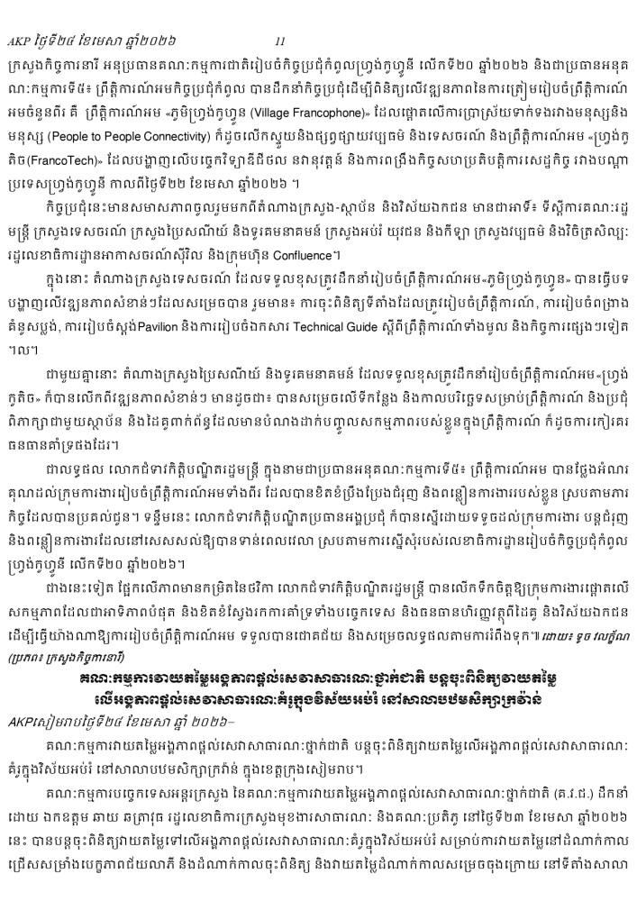 AKP ភ្នំពេញ ថ្ងៃទី២៤ ខែមេសា ឆ្នាំ២០២៦ -