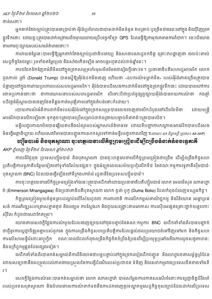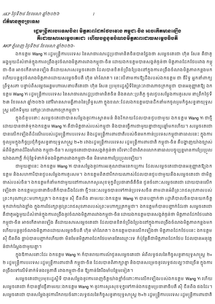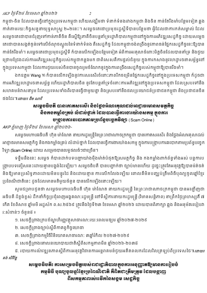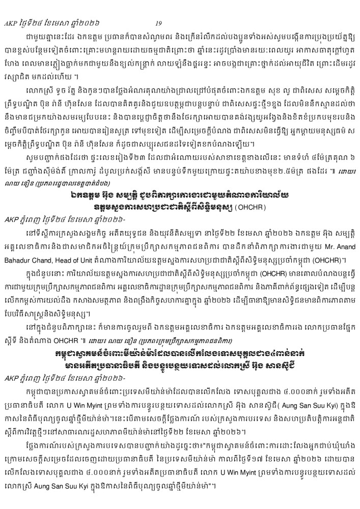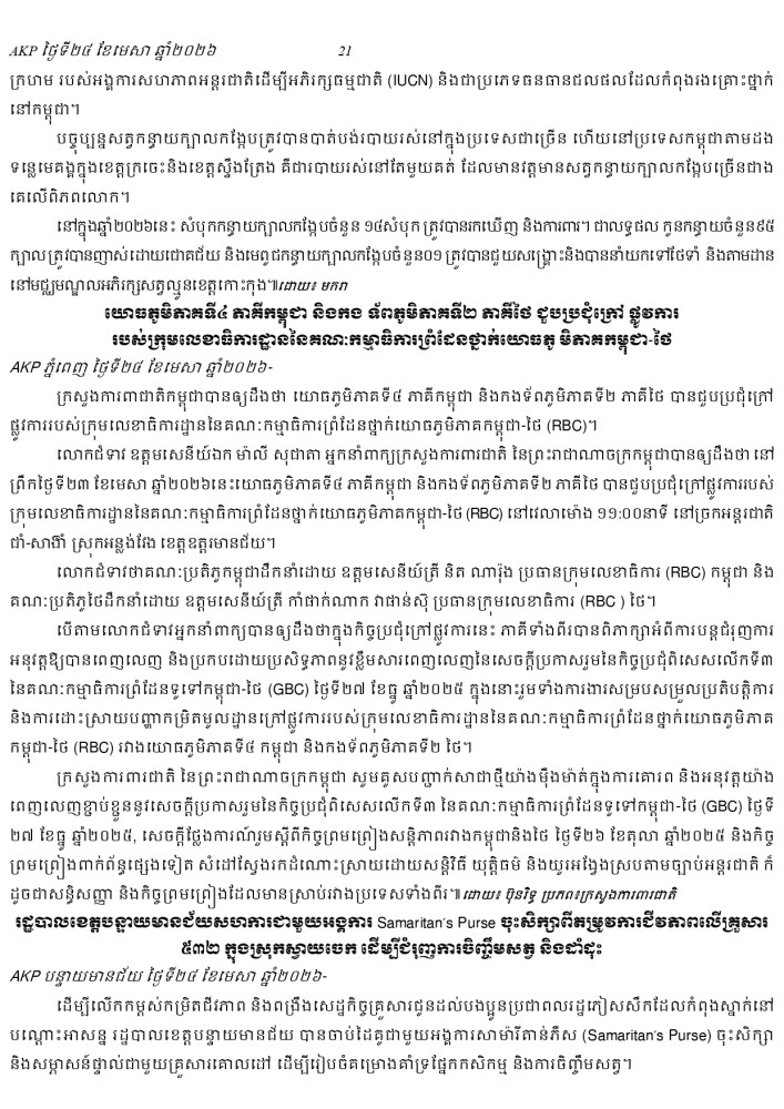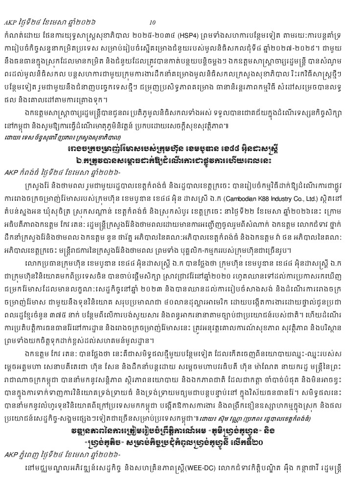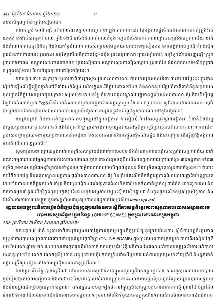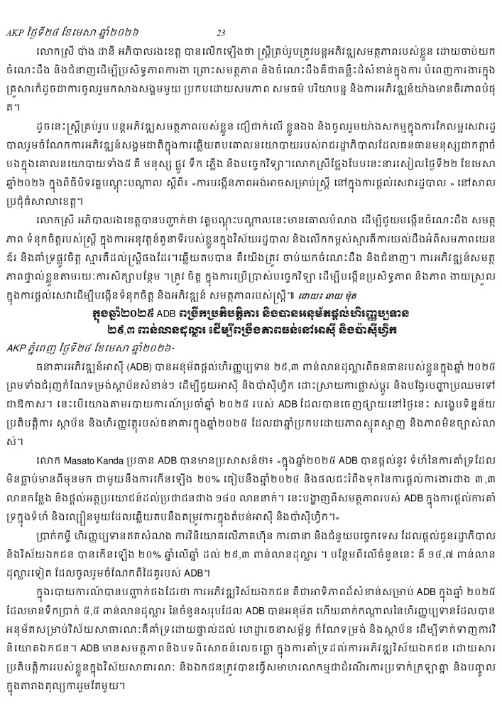 AKP ភ្នំពេញ ថ្ងៃទី២៤ ខែមេសា ឆ្នាំ២០២៦ -