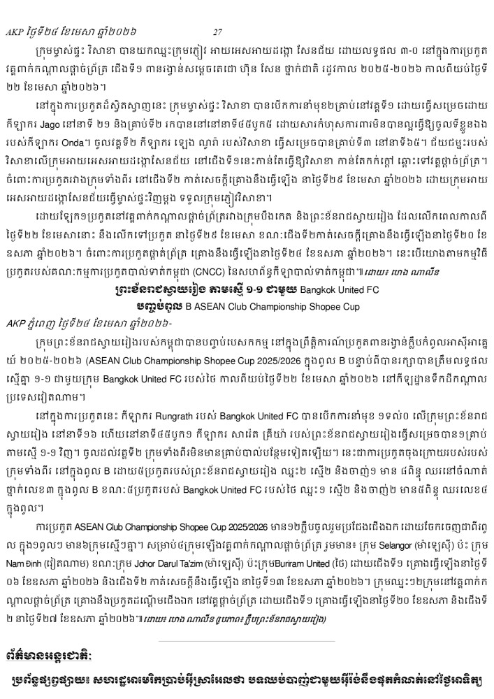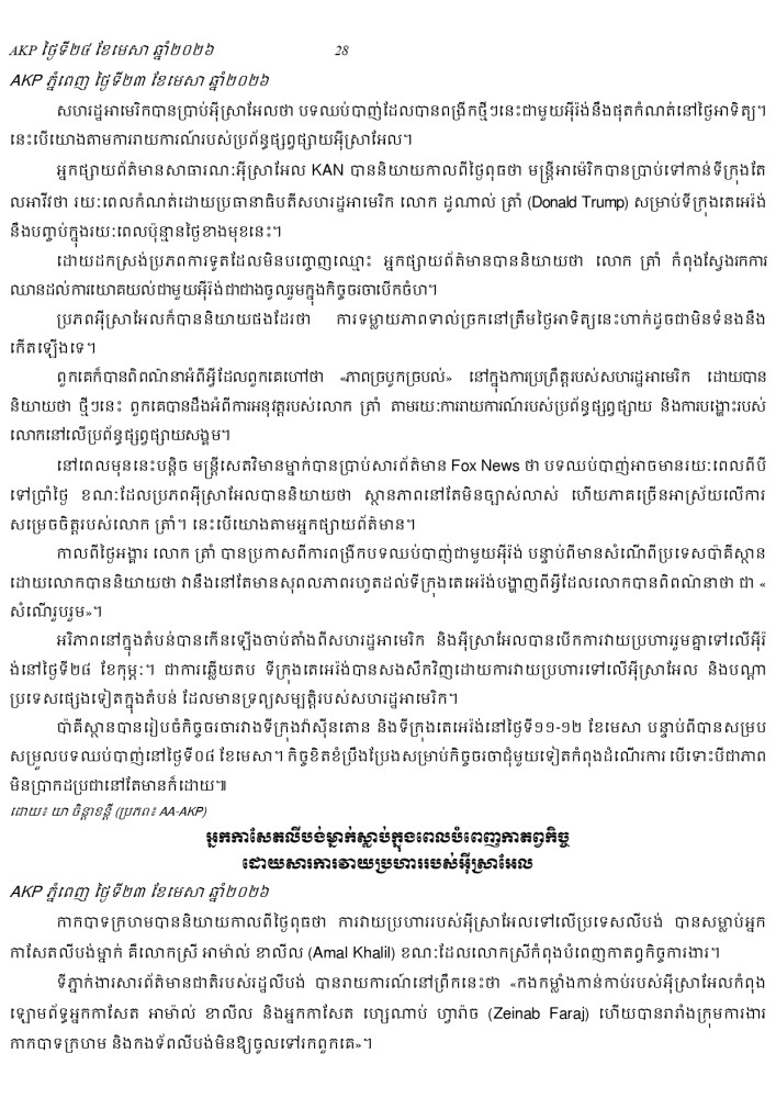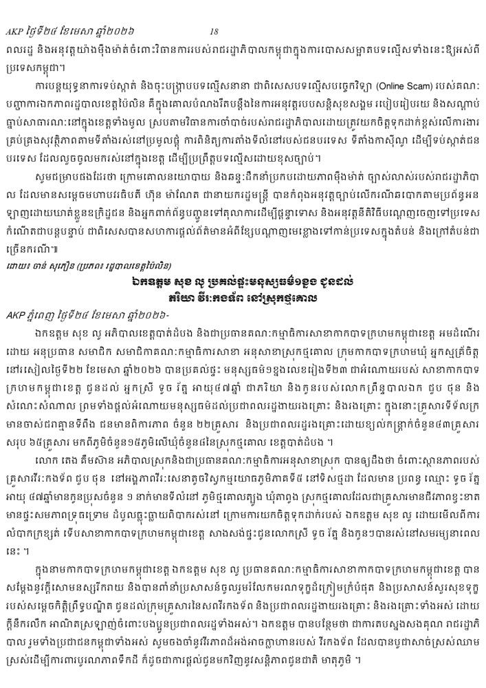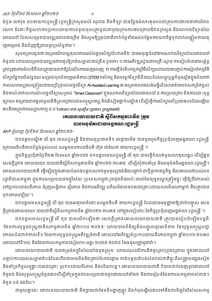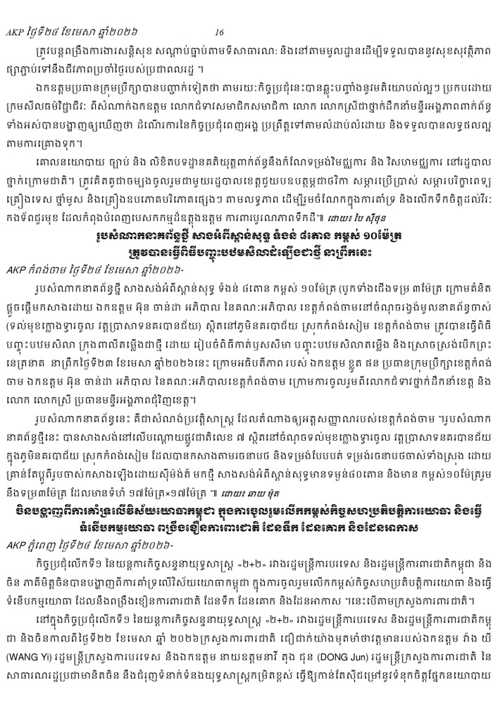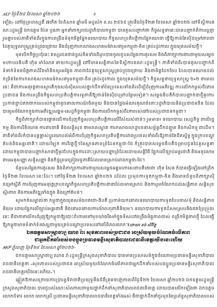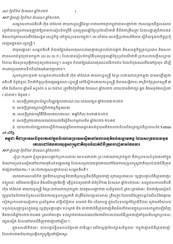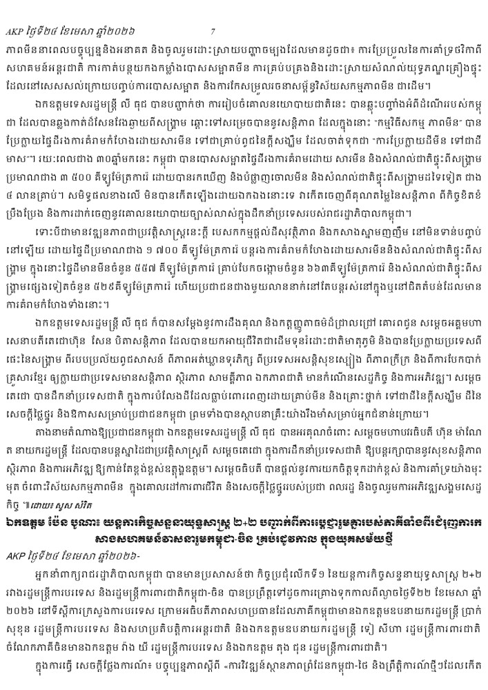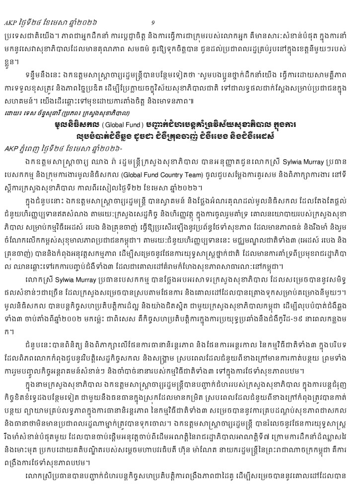 AKP ភ្នំពេញ ថ្ងៃទី២៤ ខែមេសា ឆ្នាំ២០២៦ -