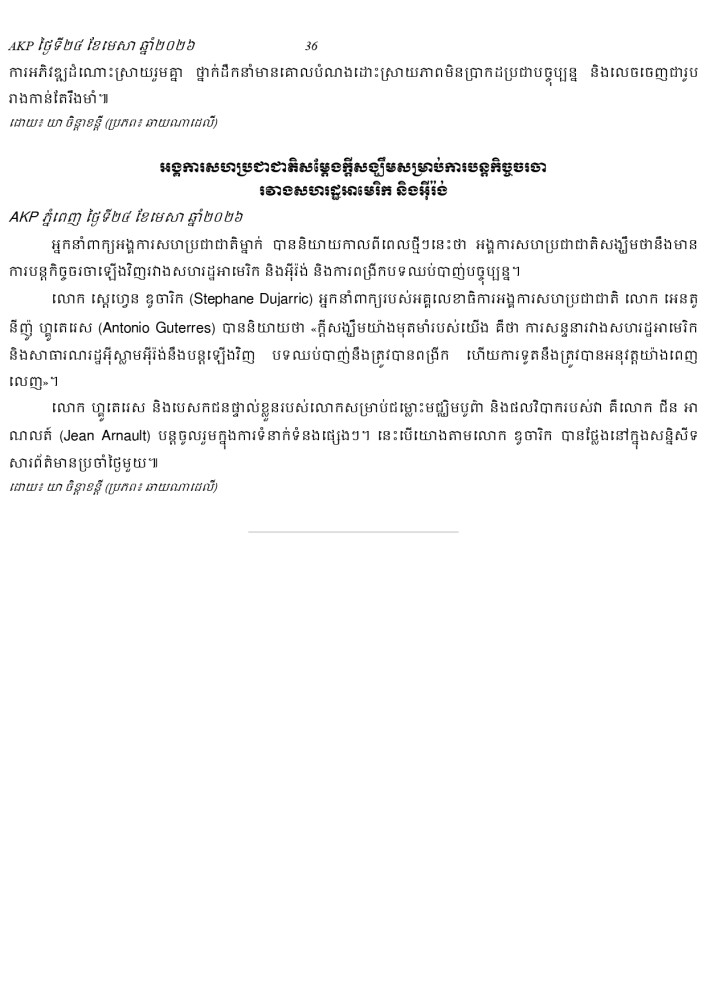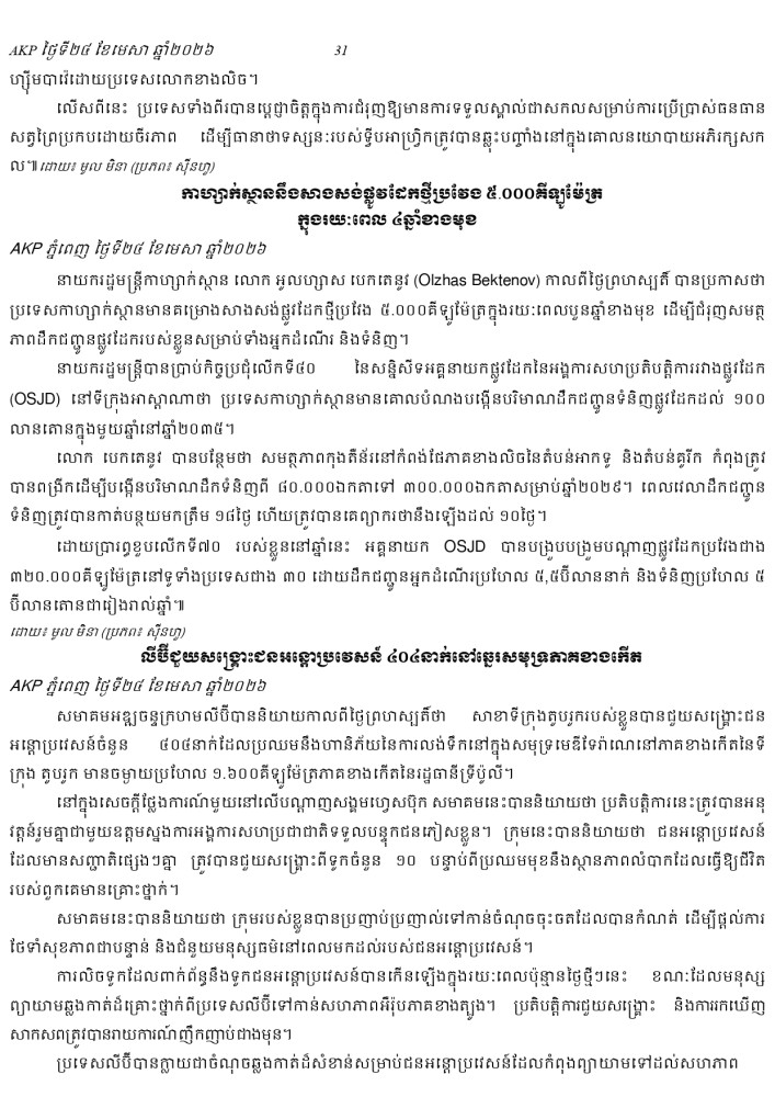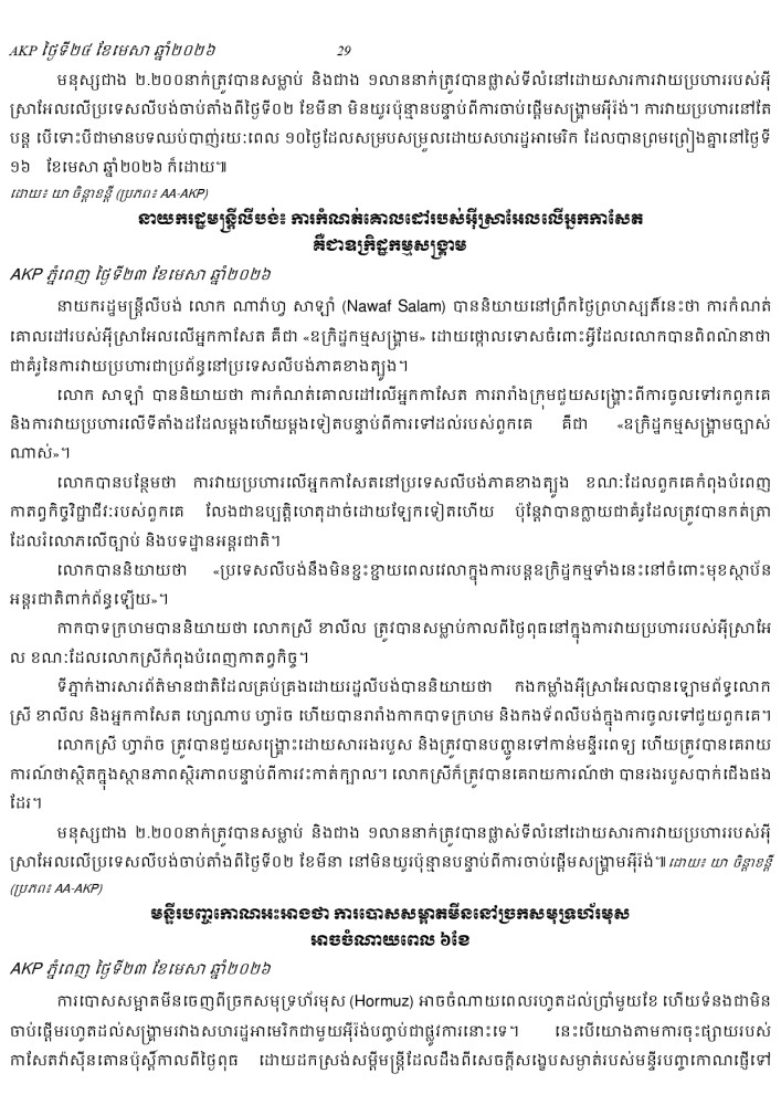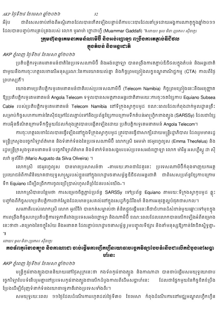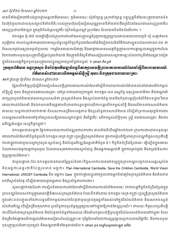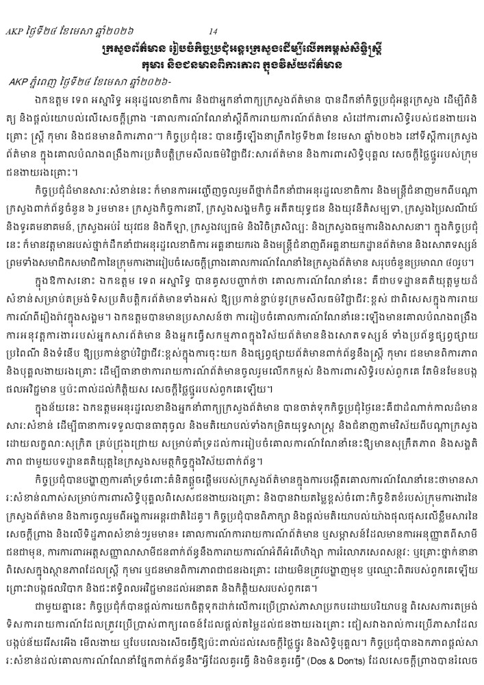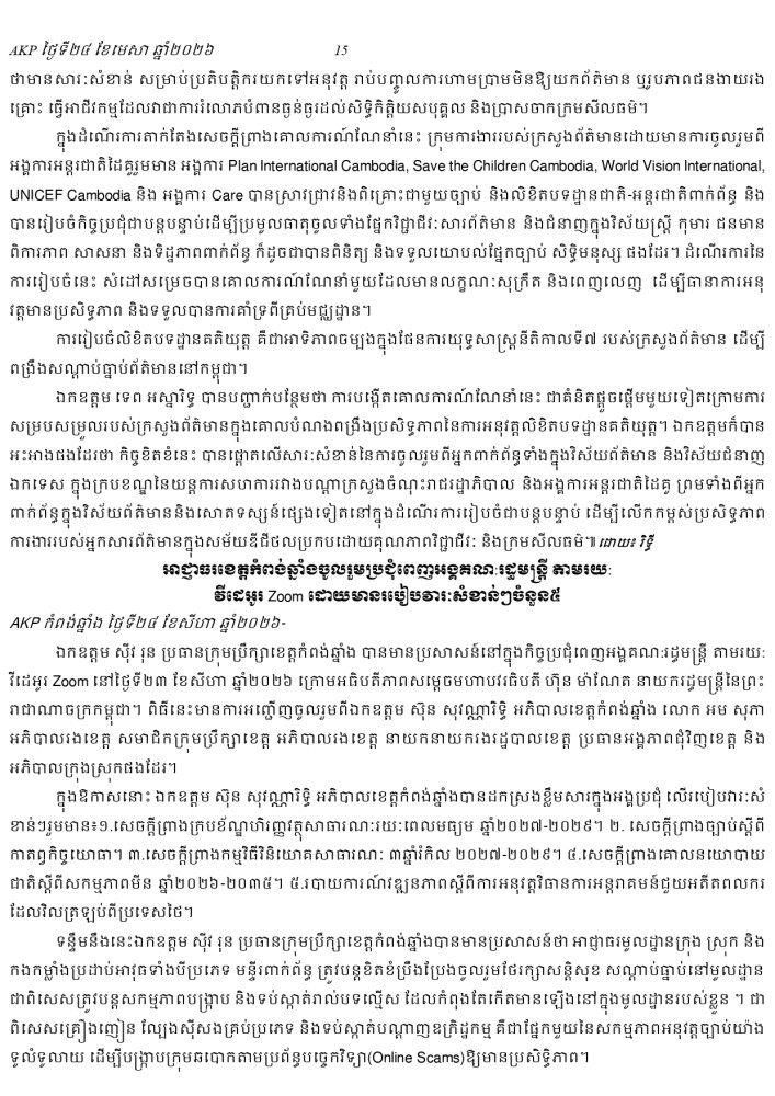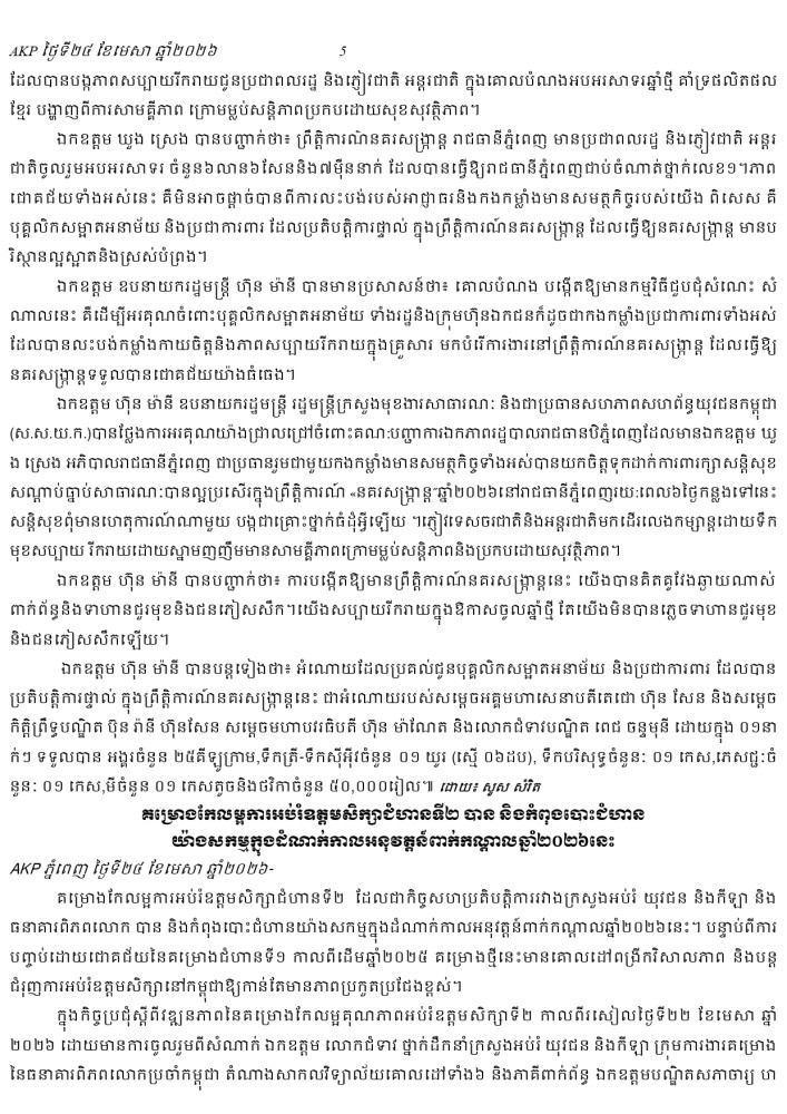 AKP ភ្នំពេញ ថ្ងៃទី២៤ ខែមេសា ឆ្នាំ២០២៦ -